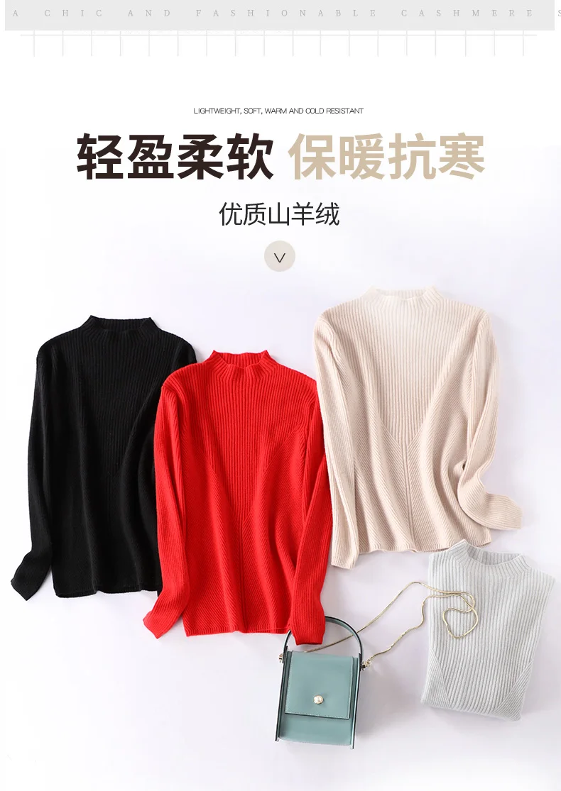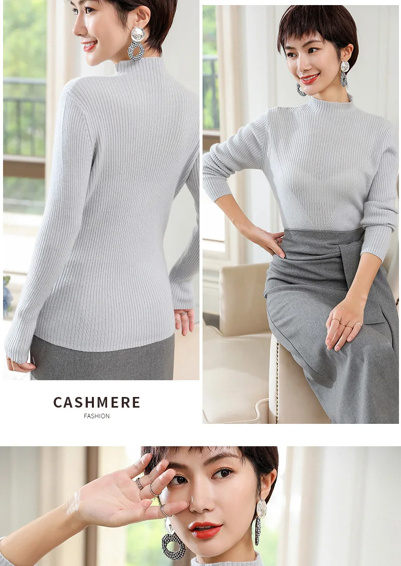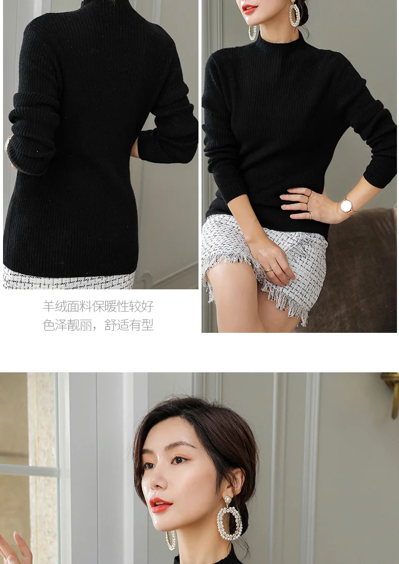 Отзывы о Женский вязаный кашемировый свитер с высоким воротником на осень и зиму 2019