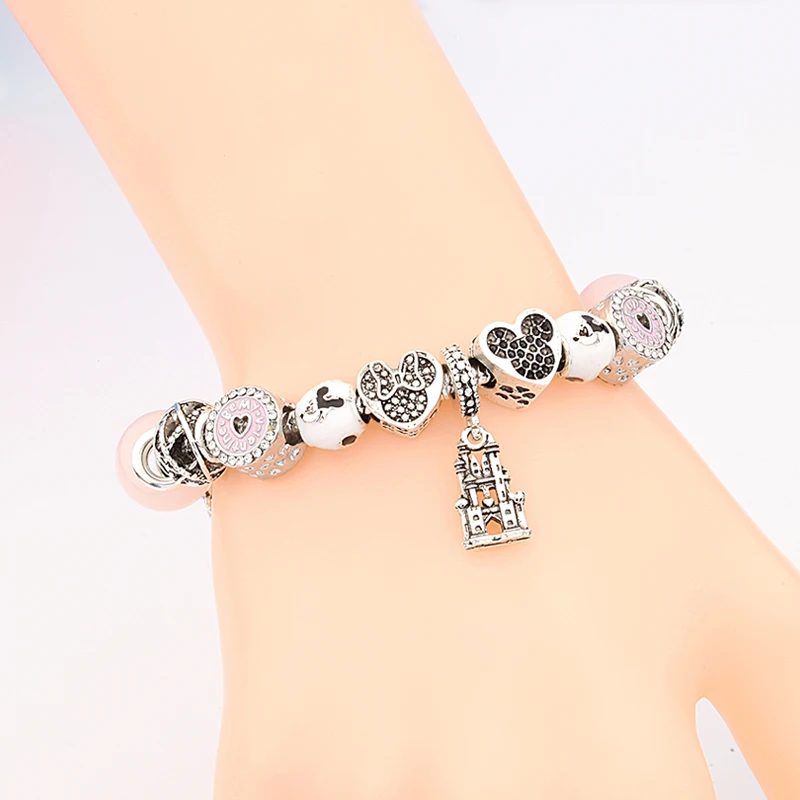 Купить Женский браслет с бусинами и шариком подвесками в виде замка сердца Минни Микки