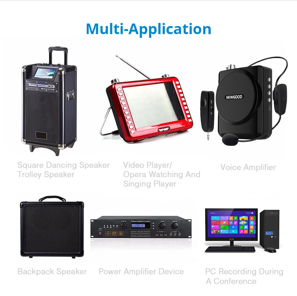 1. 50m max Long distance wireless transmission. 2. Built-in over-capacity polymer battery 400Mah. A single Charge, can always use more than 12 hours, long battery life 3. Selection of high-quality materials, micro-USB charging port 4. Super anti-whistle features 5. As long as there is power coupling interface or microphone audio input interface of the receiver can be inserted and KTV wireless public address functionality 6. Widely used: Teaching, tour guide, sales promotion, lectures, meetings, karaoke, fans singing and so on