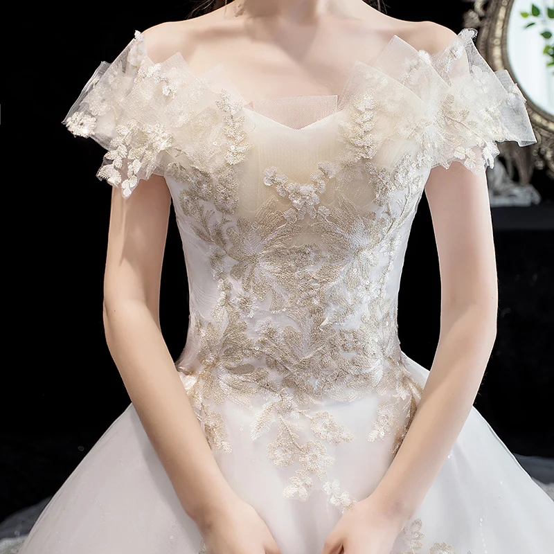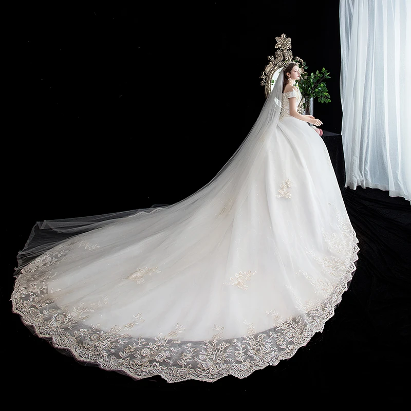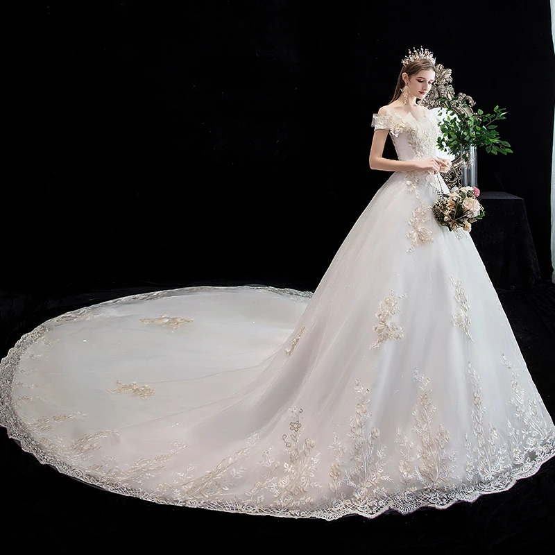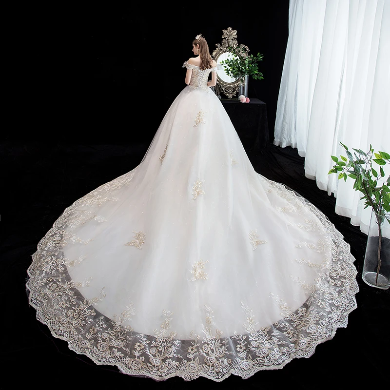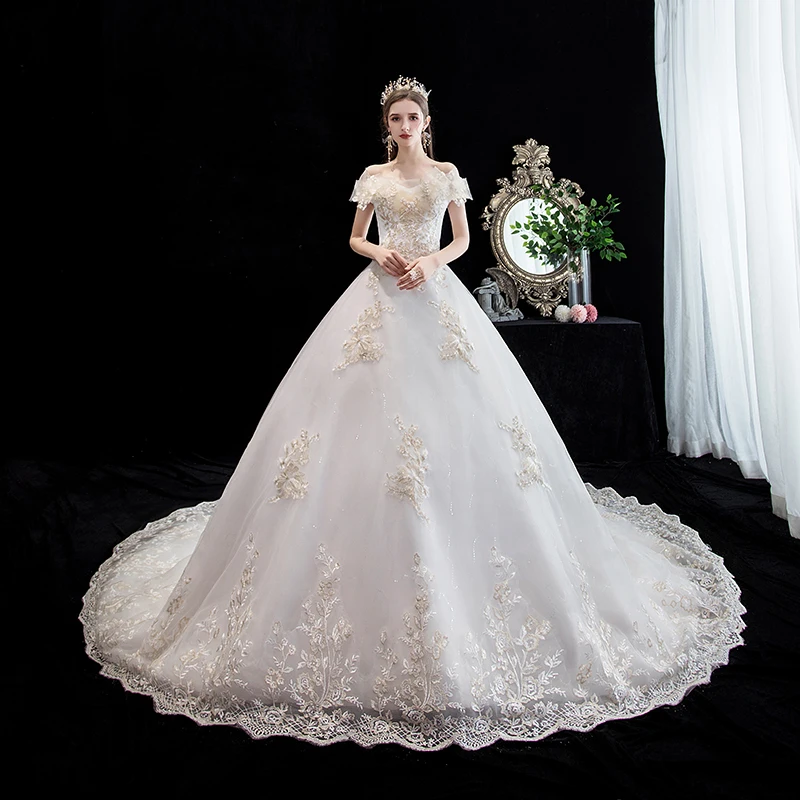 Купить Свадебное платье с вырезом лодочкой роскошное бальное принцессы со шлейфом