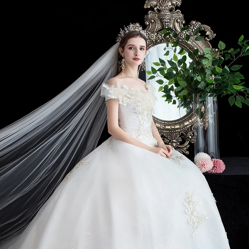 Свадебное платье с вырезом лодочкой роскошное бальное принцессы со шлейфом - купить