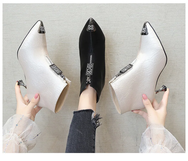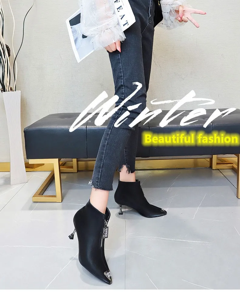 Отзывы о Ботинки женские демисезонные с острым носком на высоком каблуке зимние Обувь