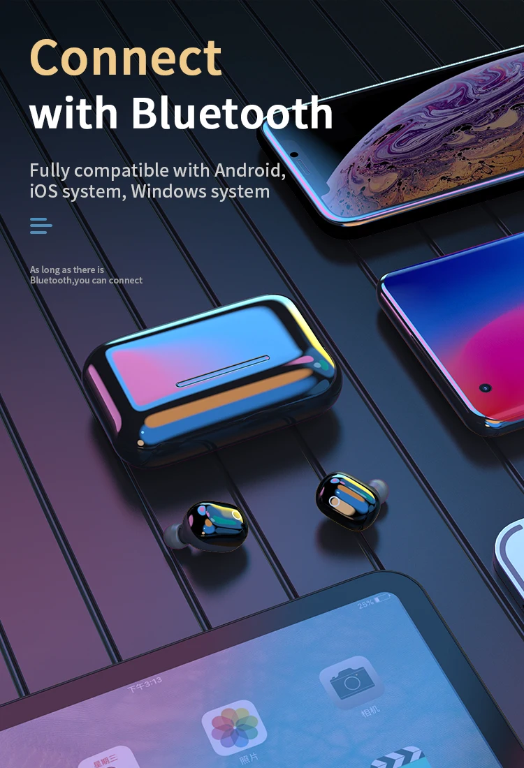 Беспроводное подключение: Bluetooth 5,0 Дальность связи: 10 метров (доступная открытая площадка) Время работы: около 4 часов Время в режиме ожидания: около 150 часов Емкость аккумулятора одного наушника: 50 мА · ч Емкость зарядного устройства: 300 мАч Время зарядки наушников: около 1 часа Время зарядки в коробке: около 2 часов Чистый вес одного наушника: около 4,1 г.