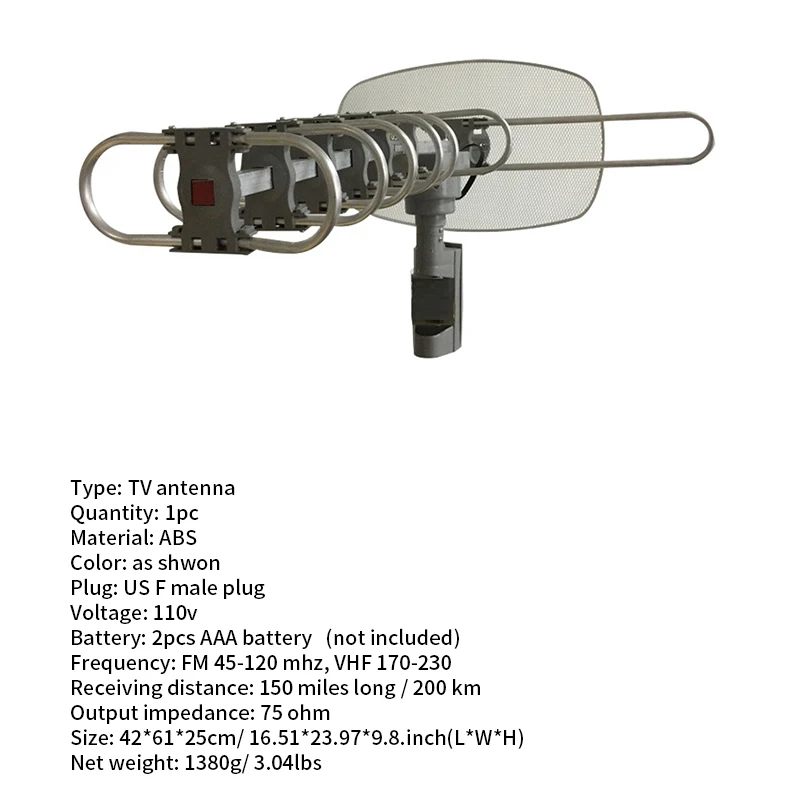 Телевизионная антенна с функцией дистанционного управления и простой конструкцией проста в эксплуатации и установке. Вы можете отрегулировать его направление вращения на 360 градусов.
