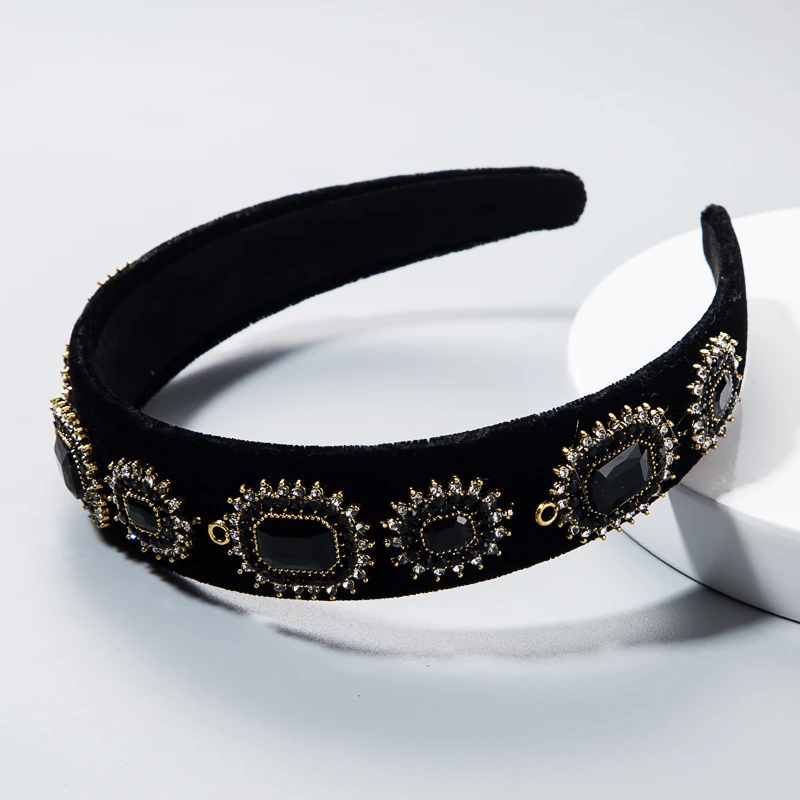 Лучшие продажи 2020 продуктов женские повязки на голову бархатные цветочные и травяные инкрустированные полностью цветные стеклянные Кристальные широкие резинки для волос