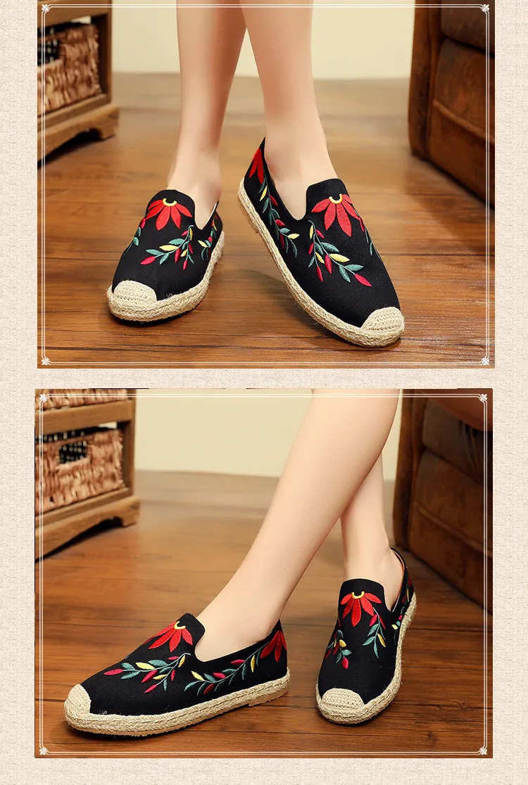 Отзывы о Женская обувь классические тканевые туфли новые с вышивкой в виде листьев