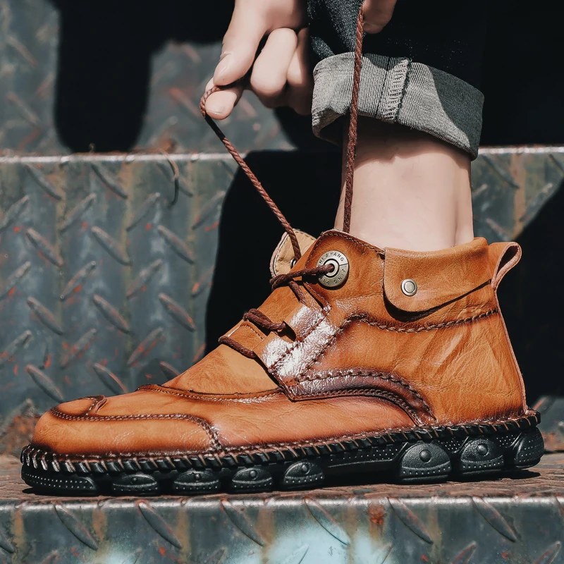 Мужские ботильоны из воловьей кожи осенне-зимняя мужская прогулочная обувь - купить