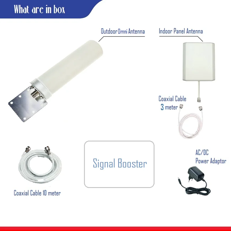 OMNI + потолочный комплект: 1 усилитель (с адаптером переменного/постоянного тока) 1 шт. 2-наружная всенаправленная антенна 1 шт 3-комнатная потолочная всенаправленная антенна 1 шт. 4-коаксиальный кабель 10 м 1 шт. 5-коаксиальный кабель 3 м 1 шт. Комплект OMNI + панель: 1 усилитель (с адаптером переменного/постоянного тока) 1 шт. 2-наружная всенаправленная антенна 1 шт 3-Крытый панельная антенна 1 шт. 4-коаксиальный кабель 10 м 1 шт. 5-коаксиальный кабель 3 м 1 шт. OMNI + набор для плетения: 1 усилитель (с адаптером переменного/постоянного тока) 1 шт. 2-наружная всенаправленная антенна 1 шт 3-внутренней штыревой антенной 1 шт. 4-коаксиальный кабель 10 м 1 шт. Только усилитель 1 усилитель (с адаптером переменного/постоянного тока) 1 шт.