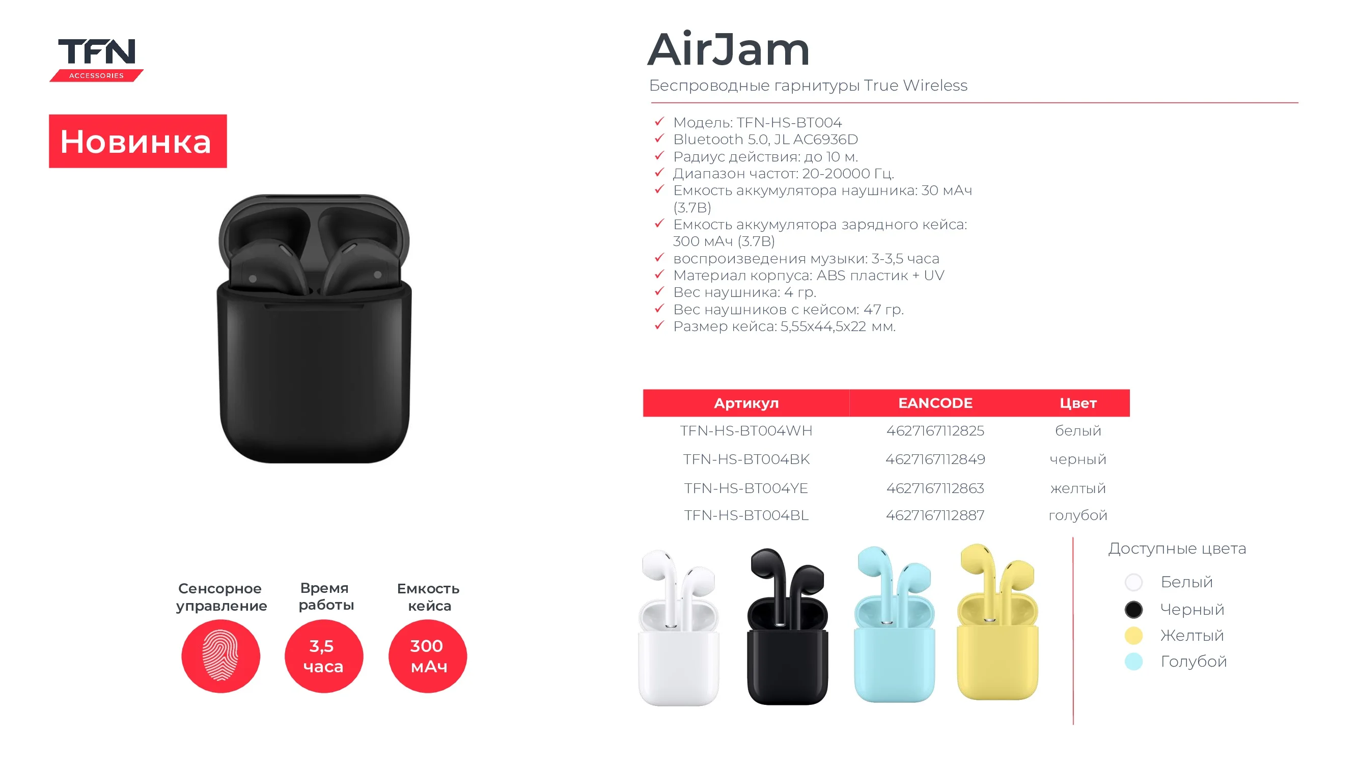 Wireless headphones TFN Bluetooth airjam true wireless Электроника - купить