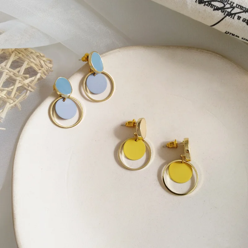 S925 игольчатые модные ювелирные серьги лидер продаж круглые желтые синие Висячие - купить