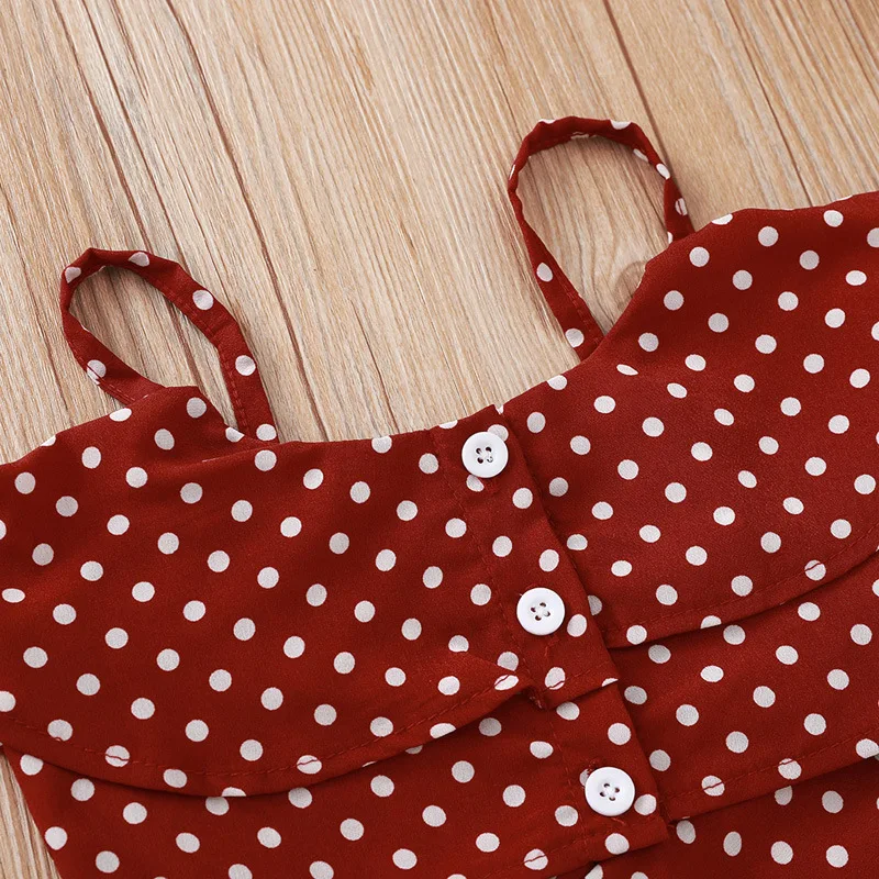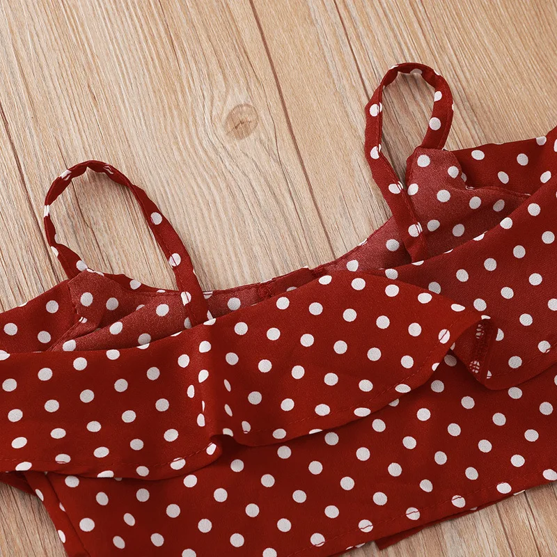 Хлопок и полиэстер удобные Милые красные детские наряды в горошек для девочек Модный дизайн; милая летняя одежда Цвет: красный, как на картинке Эти модные наряды Очень ценны! С хлопковым материалом Идеально подойдет для летнего отдыха. Размер: 90/100/110/120/130 Таблица размеров: