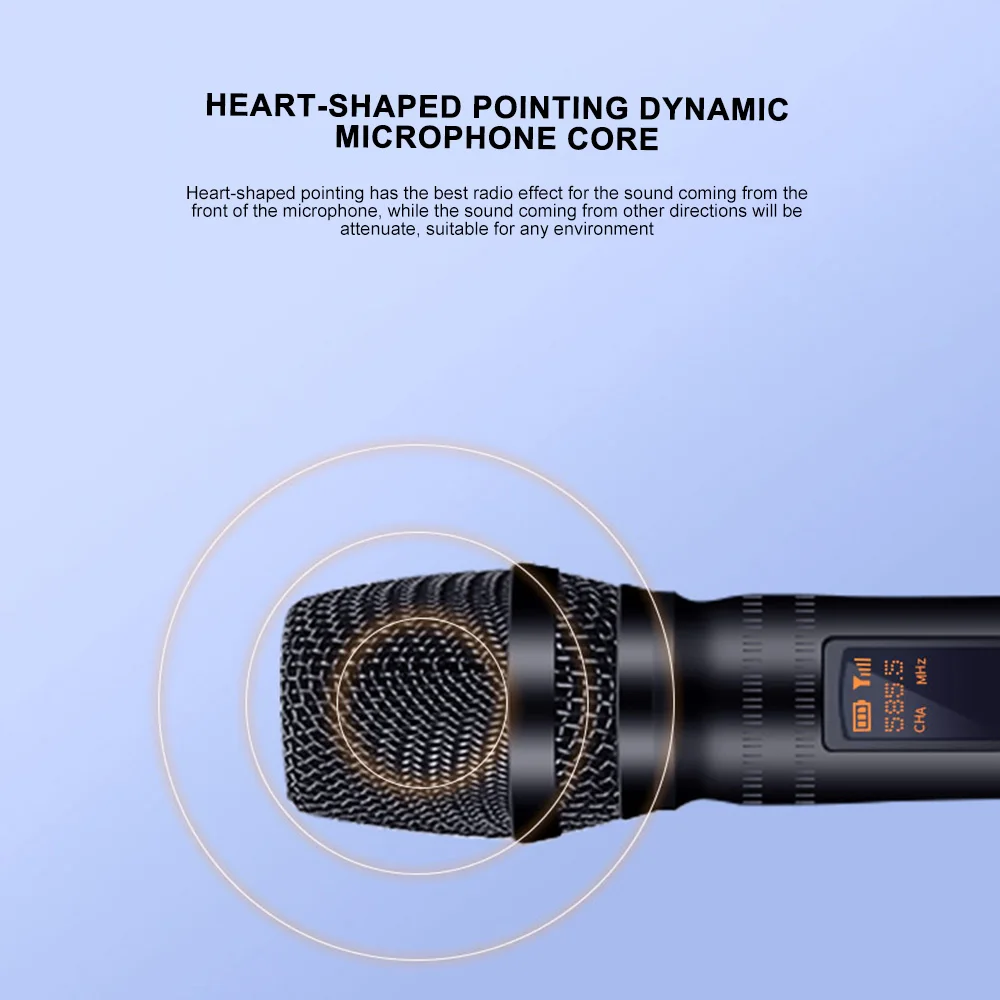 Высокое качество передачи звука, чистый голос и без отзывы, без искажений. Этот портативный беспроводной микрофон предназначен для голосового использования в режиме реального времени, усиления звука и студийной записи.