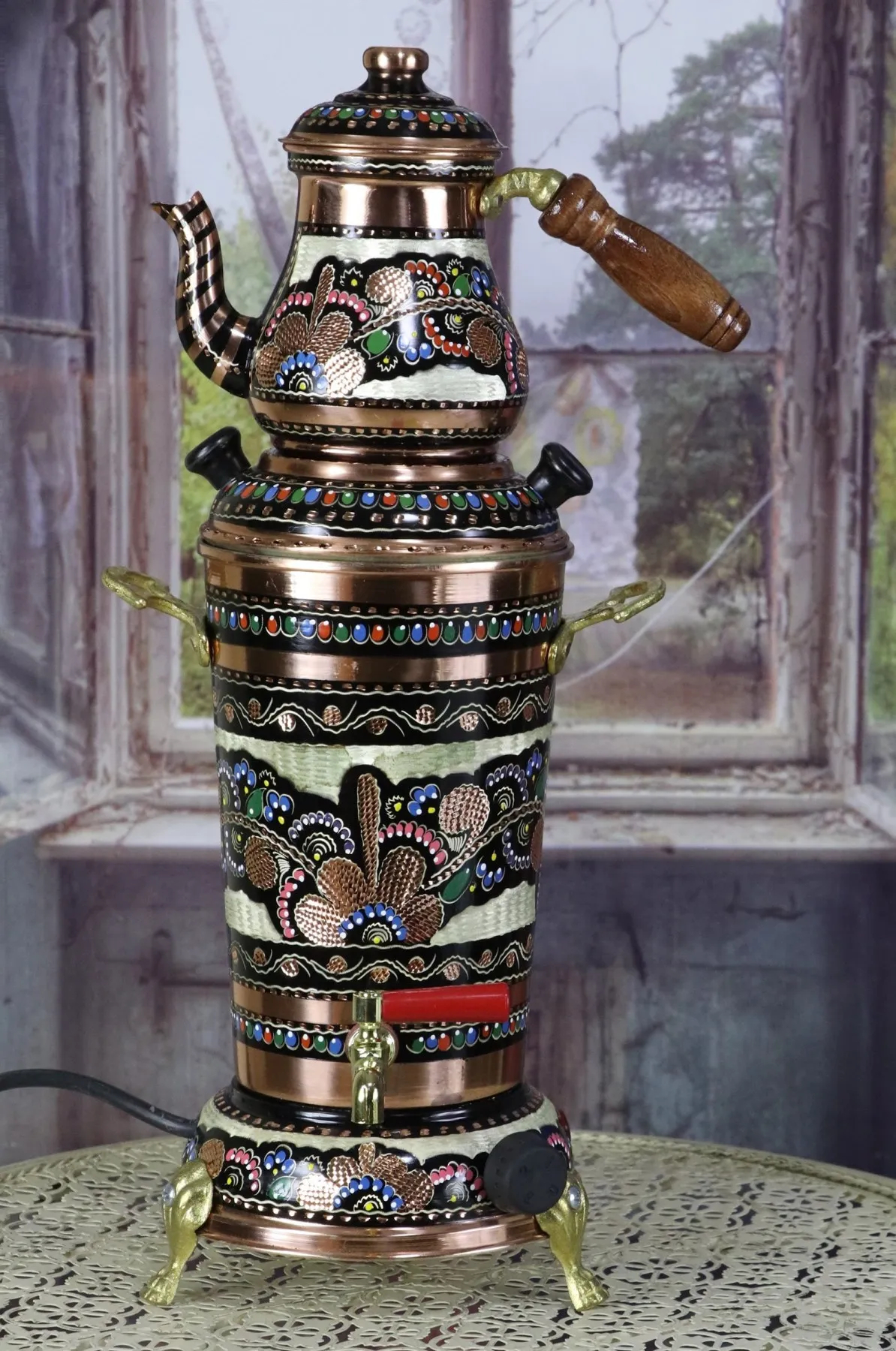Роза цветок Электрический термостат медный самовар Технические характеристики Наш продукт полностью изготовлен из ручной работы. Вышивка снаружи выполнена вручную Erzincan. Он изготовлен из толстой меди 0,8 мм. Внутренние части покрыты оловом. Внешние части покрыты защитным материалом, который защищает его яркость. Работает с 220 В. Имеет термостат. 1 Набор медных образцов CПрозрачность Верх 0,6 ЛТ Нижний 2 ЛТ