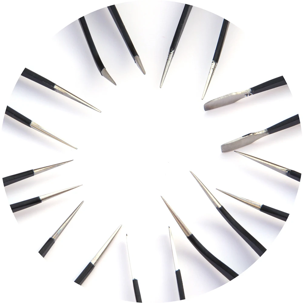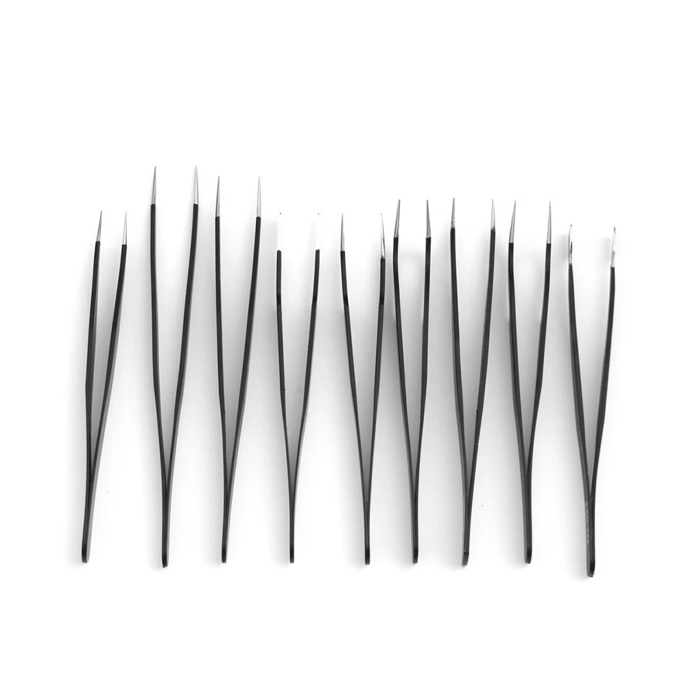 Полный набор различных прецизионных пинцетов для всех типов тонкой, детальной работы.