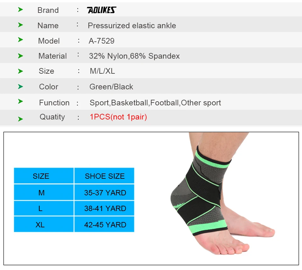 Особенности: Идеально подходит для любых видов деятельности, требующих движения по щиколотку, таких как футбол, баскетбол, бег и т. д. Помогает улучшить кровообращение и поддерживать поврежденные или слабые лодыжки. Уменьшает боль, вызванную артритом и тендинитом. Дышащая ткань будет удобна в носке. Высокоэластичная Трикотажная хлопковая ткань, дышащая и не душная. Технические характеристики: Название: голеностопного сустава Материал: нейлон, спандекс Цвет: черный/синий/красный/зеленый Размер: M/L/XL/XXL M: подходит для 35-37 ярдов L: размер 38-41 XL: подходит для размеров 42-45 XXL: подходит для размеров 46-48 Посылка включает в себя: 1 шт. бандаж на лодыжку (1 шт., не 1 пара)