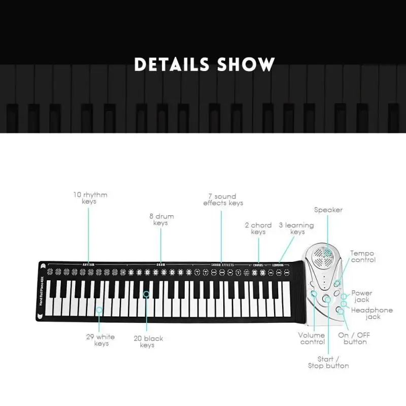 1. Мягкая клавиатура с 49 клавишами (стандартное фортепиано клавиш 4 раза + 1 клавиша)