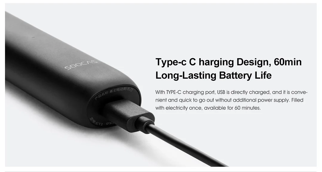 Xiaomi Soocas электробритва Трёхстороннее лезвие для быстрого бритья Универсальный нож чистая Type-C быстрое зарядное устройство 60 дней Срок службы батареи