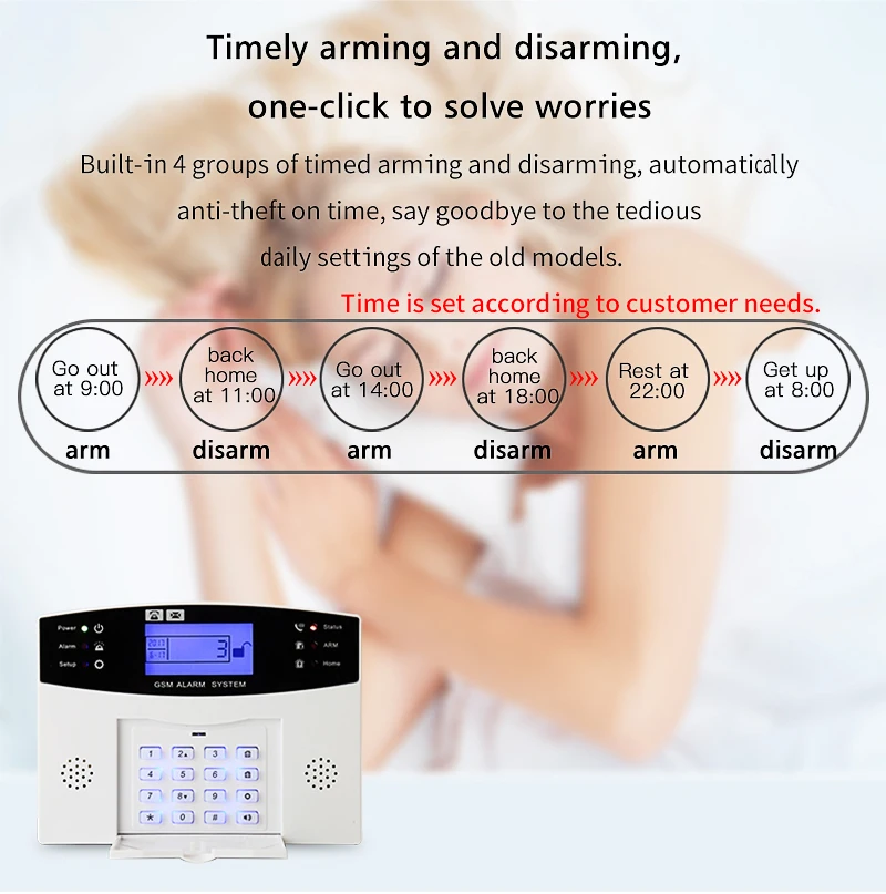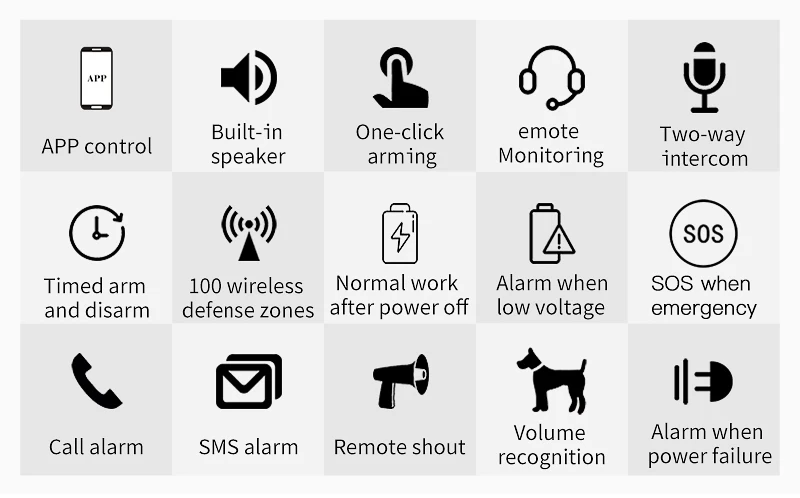 Традиционные кнопки, eays для работы. Уведомления от нескольких человек, не пропуская каждый сигнал тревоги. Своевременное вооружение и обезвреживание, Одно нажатие, чтобы решить проблемы. Функция записи голоса. Режим дверного звонка. Больше функций приветствуется запрос.