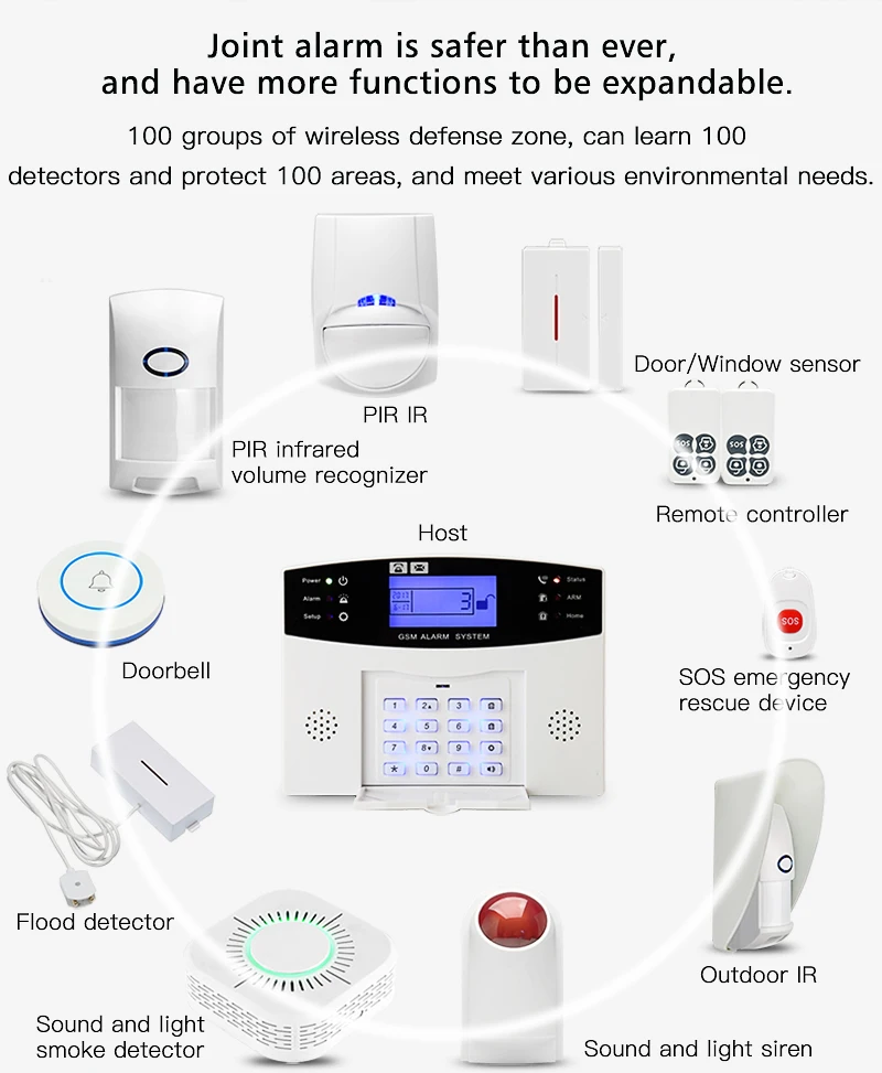 Соединение с датчиком двери, детектором PIR, ip-камерой и т. д., вы можете сделать более безопасный дом. Больше способов управления для вашего удобства.
