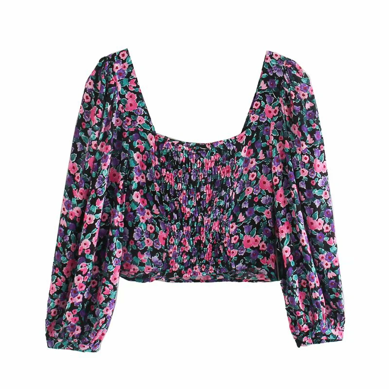 Отзывы о Женская укороченная блузка с цветочным принтом винтажная эластичная рубашка