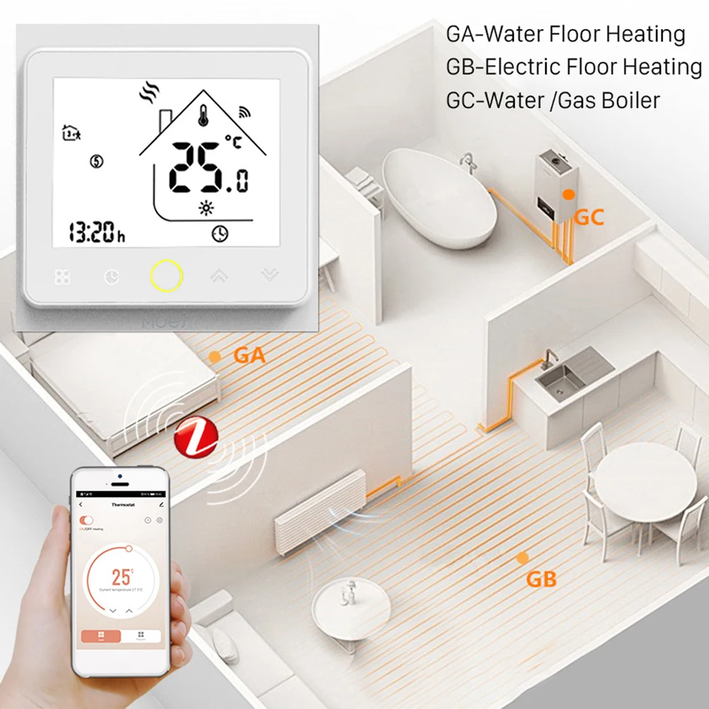 Интеллектуальный термостат Tuya ZigBee: функциональная система отопления с протоколом ZigBee, встроенная для интеллектуального управления водным полом, электрическим отоплением и системой нагрева воды/Газа, обеспечивает максимальное и всестороннее удобство для вашей умной жизни при температуре дома, (Примечание: текущая нагрузка составляет 5А) фокусируется на изготовлении простого, человеческого, Восхитительные чувства к вашему дому, и этот вид цвета подходит для различных стилей украшения, даже с коррекцией температуры и поддержкой детского замка.