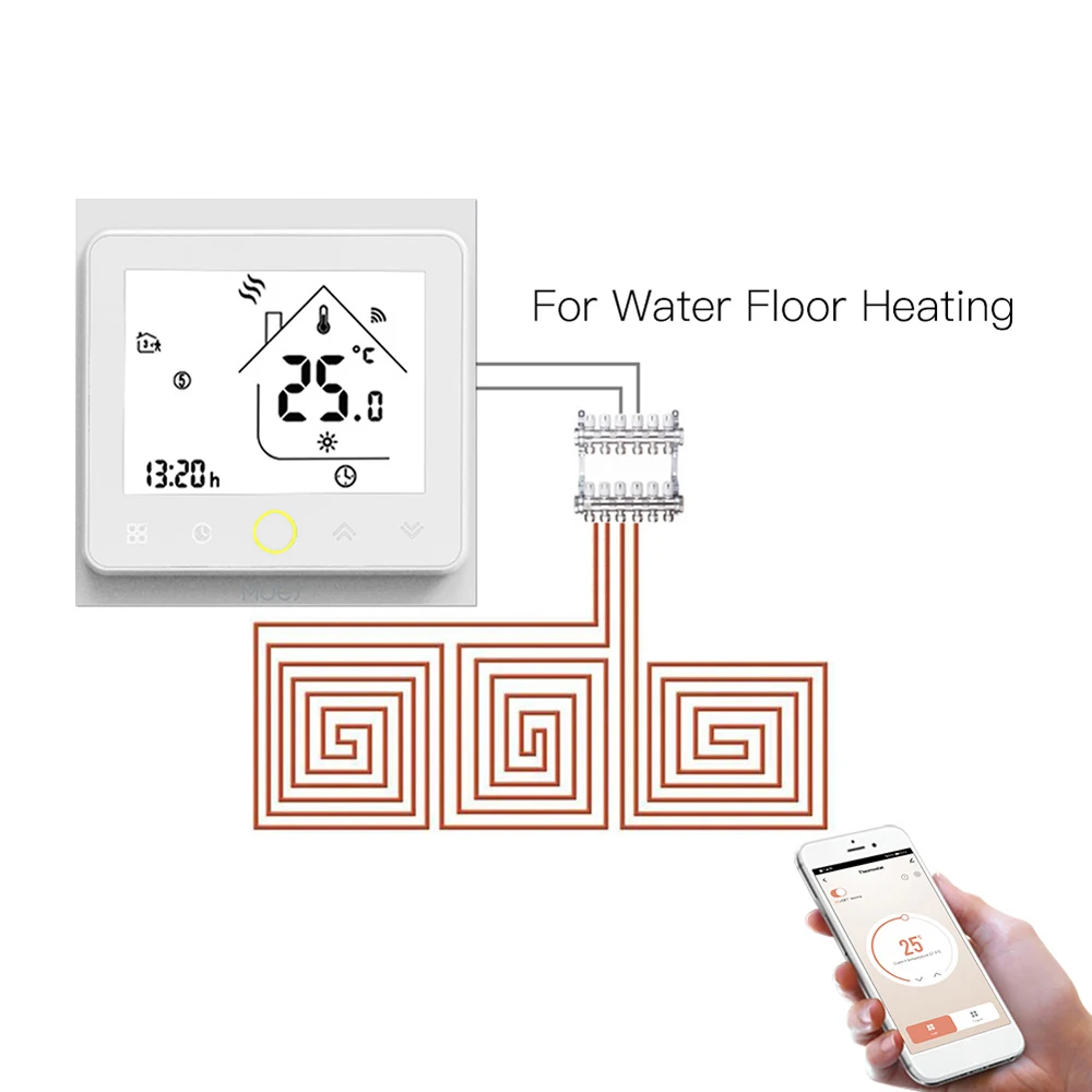 Программируемый график с еженедельным выбором программ: поддерживает ручную настройку 5 + 1 + 1 еженедельный график с 4 сроками для опции, предоставляя вам максимальное удобство для различных ситуаций и устанавливая Индивидуальный график для температуры вашего дома в умной жизни и приложении Tuya.