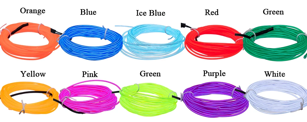 * Неоновая Электролюминесцентная (EL) проволока, гибкая и водостойкая, может быть согнута в любой форме и нарезана на любую длину.