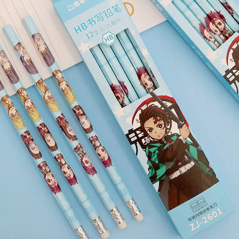 12 ручек стандартного размера HB с изображением персонажей аниме Demon Slayer Kimetsu No Yaiba - Камадо Танджиро и Нэзуко. Подарок для рисования письма - купить