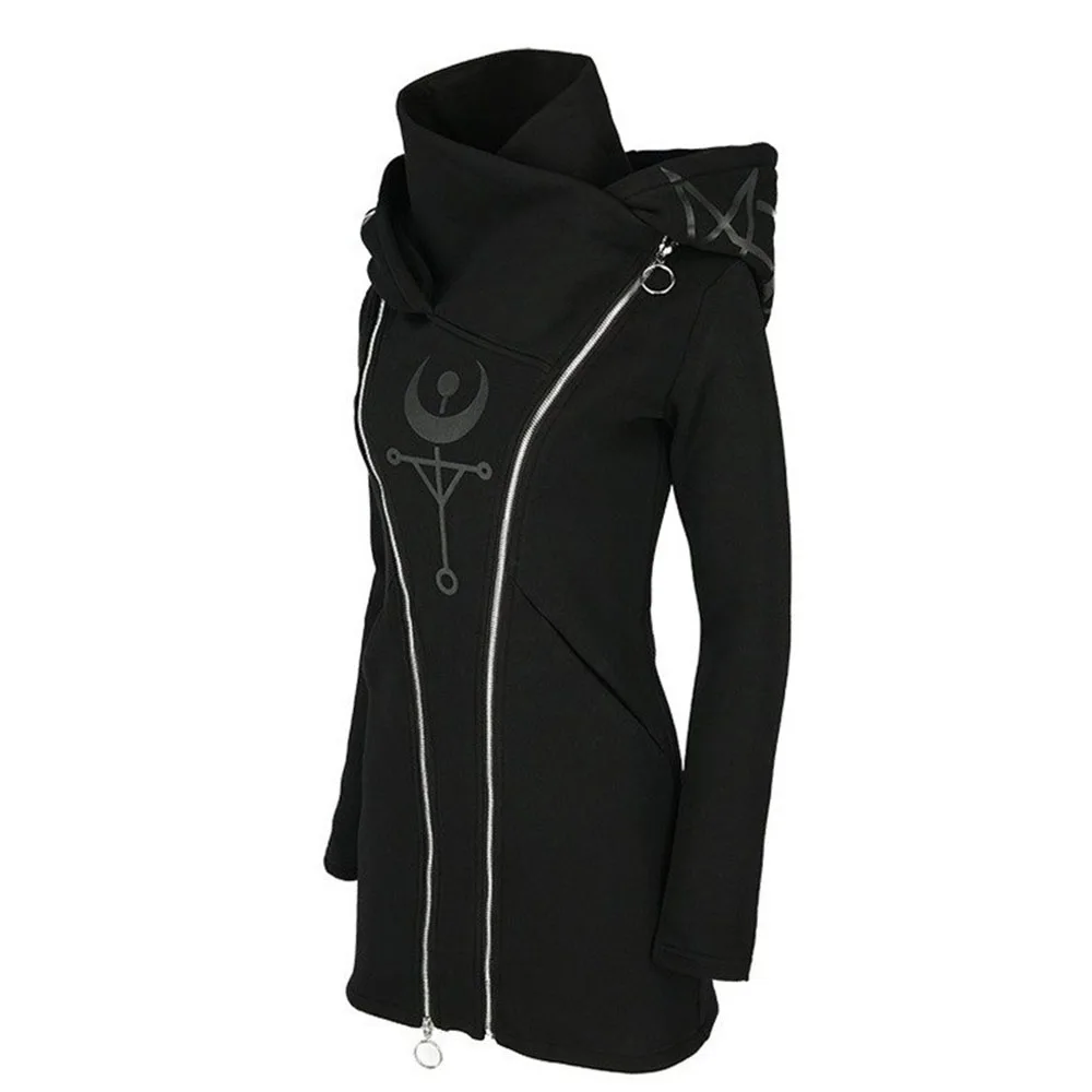 Rosetic, с капюшоном, в стиле панк, худи для женщин, на молнии, модное, повседневное, длинное пальто, уличная одежда, готика, толстовка, плюс размер, толстовки, осень