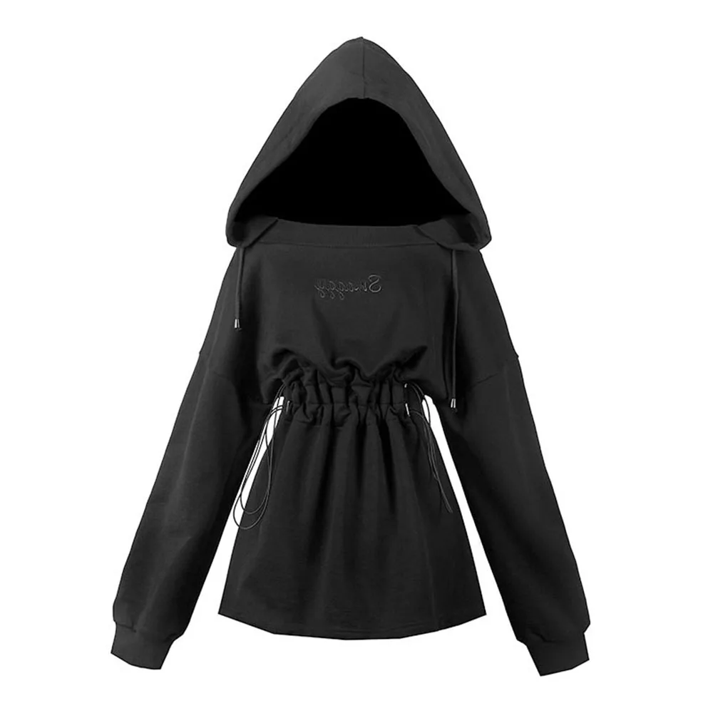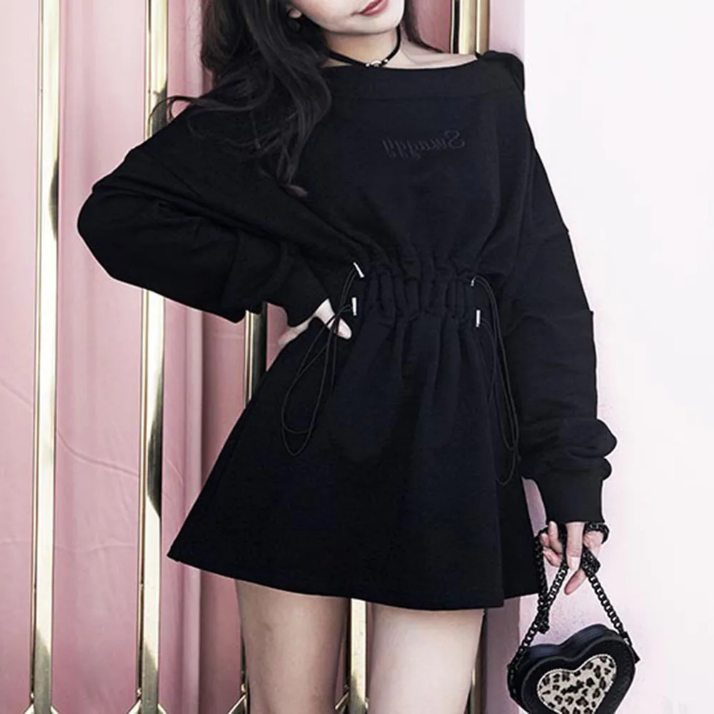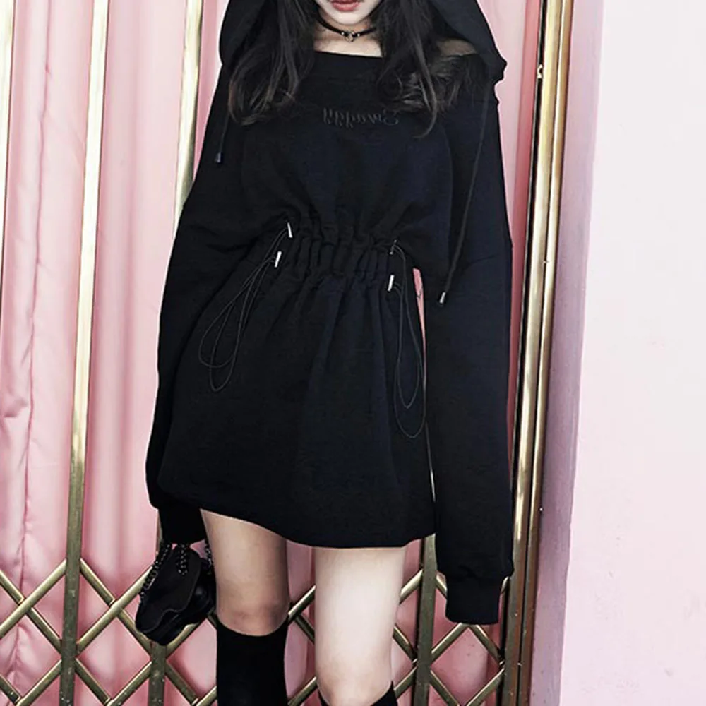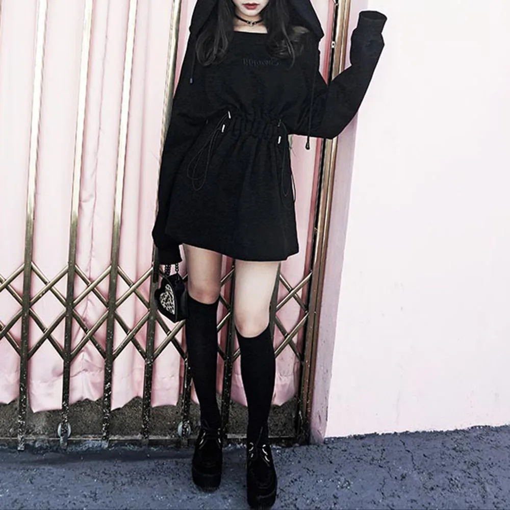 Nuevas mujeres gótico vestido con capucha letra bordado Повседневная манга larga suelta sudaderas con capucha vestidos cortos otouno Nouveau femmes gotique A capuche robe A capuche lettre broderie drescontrate A manches longues lâche sweats A capuche sweat robes courtes automne Новое женское готическое платье с капюшоном и вышивкой повседневное с длинным рукавом свободные брюки с капюшоном короткие брюки
