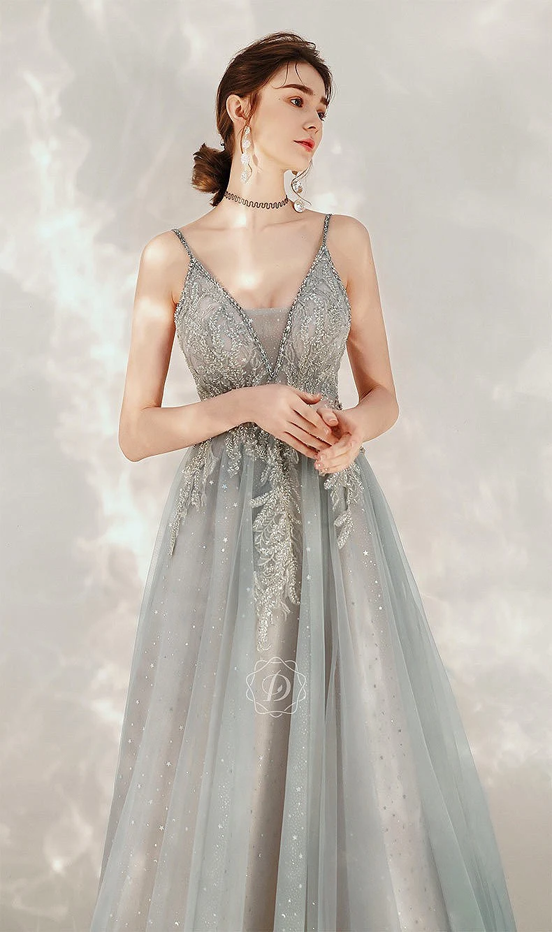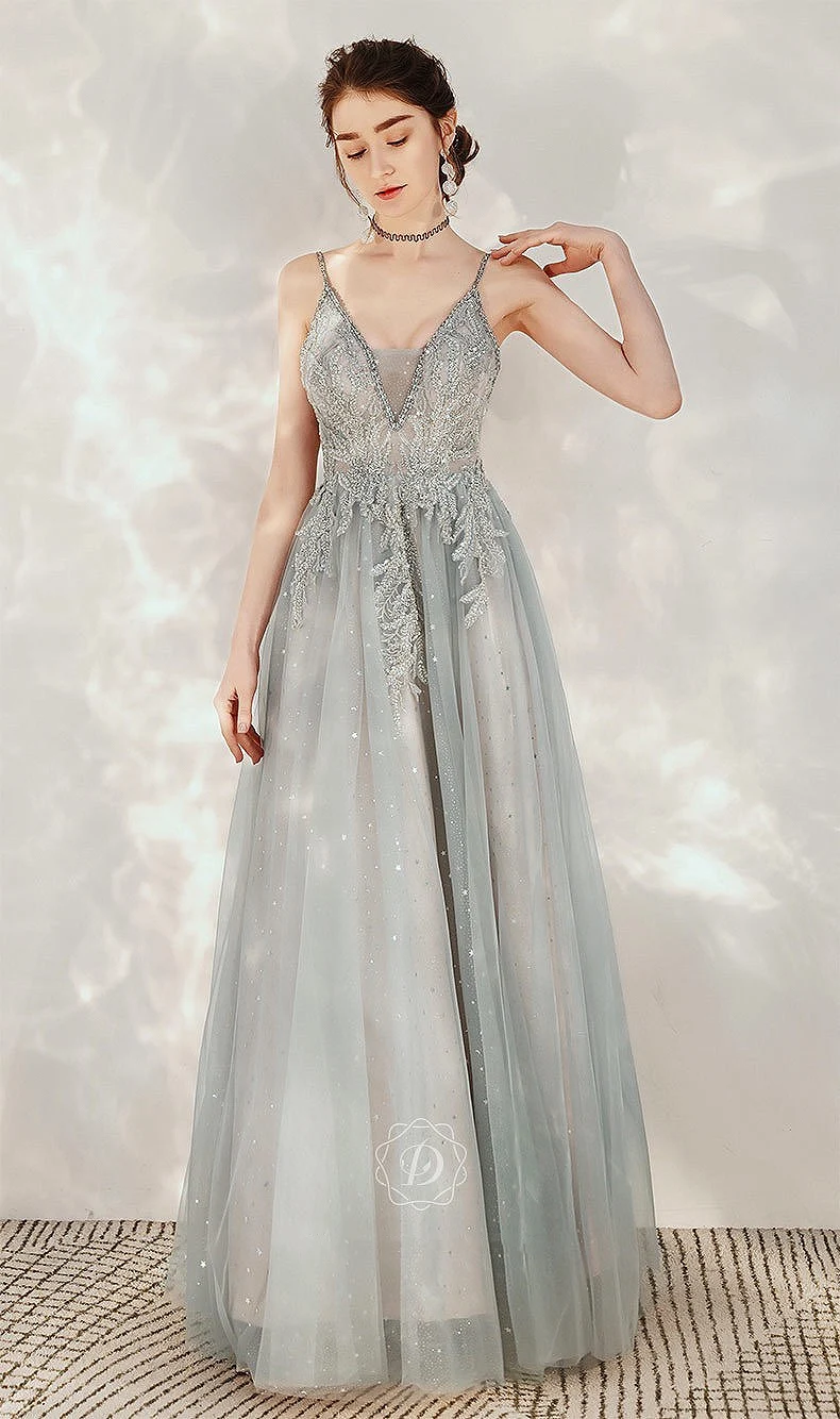 Купить Роскошное серое платье для выпускного вечера элегантное ТРАПЕЦИЕВИДНОЕ длинное