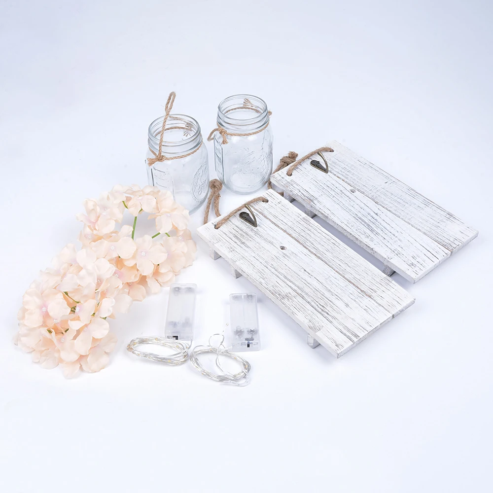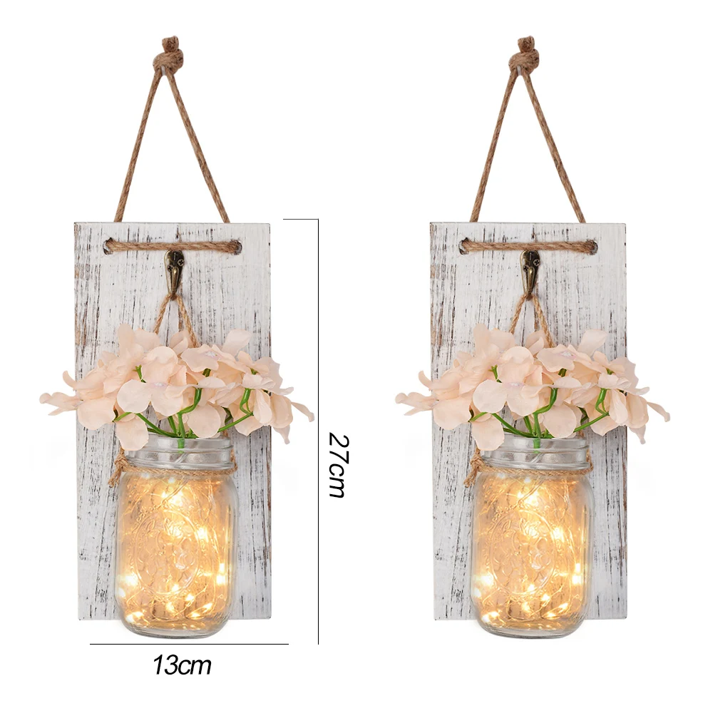Упаковка: 2 * банка Mason, 2 * цветы (27 9 # orange),2 * гирлянда для ламп (2 м 20 ламп теплый белый 2AA питание от аккумулятора),2 * плата, батарея в комплект не входит