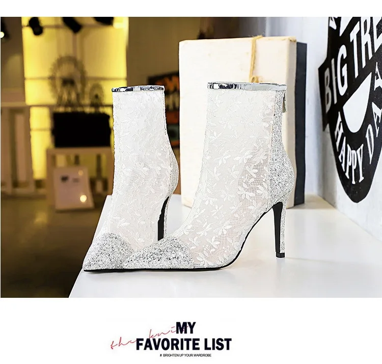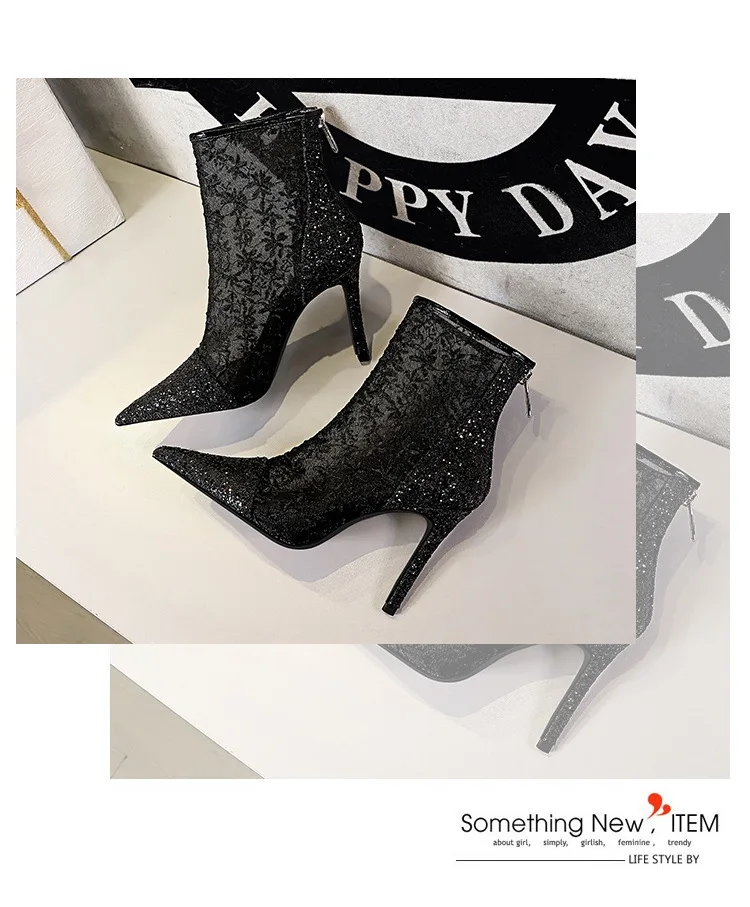 Популярные элементы: модная пикантная обувь для ночного клуба в Корейском стиле; Повседневные прозрачные сетчатые ботинки из сетчатого материала с вышивкой и блестками