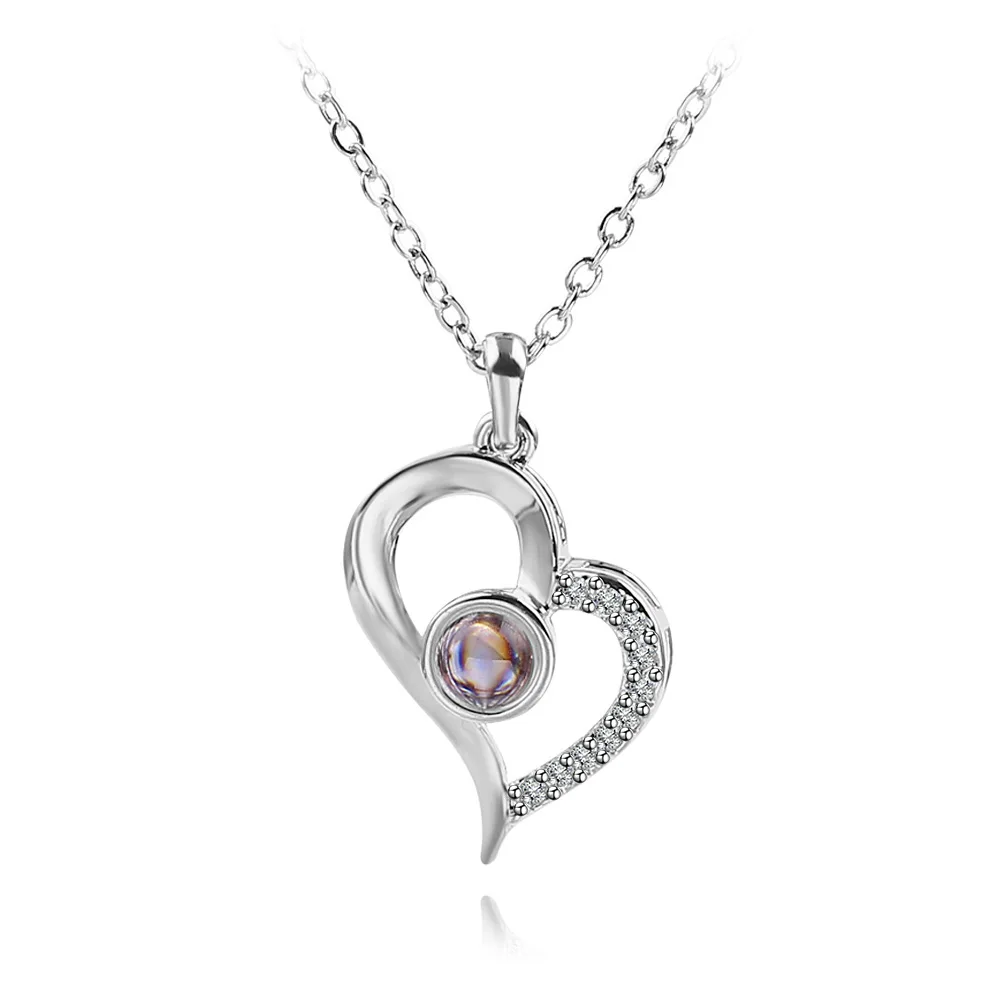 Кристаллами в виде сердца ожерелье цепочка с кулоном 100 языков I Love You - купить