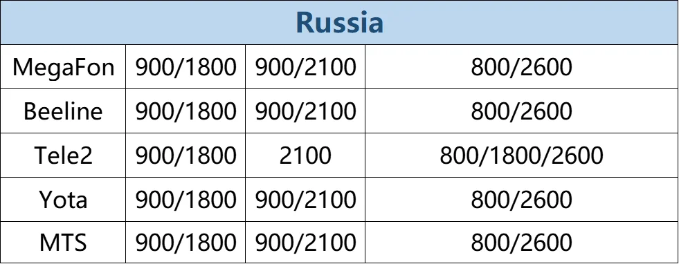 900 МГц + 1800 МГц + 2100 МГц + 800 МГц (диапазон 20)