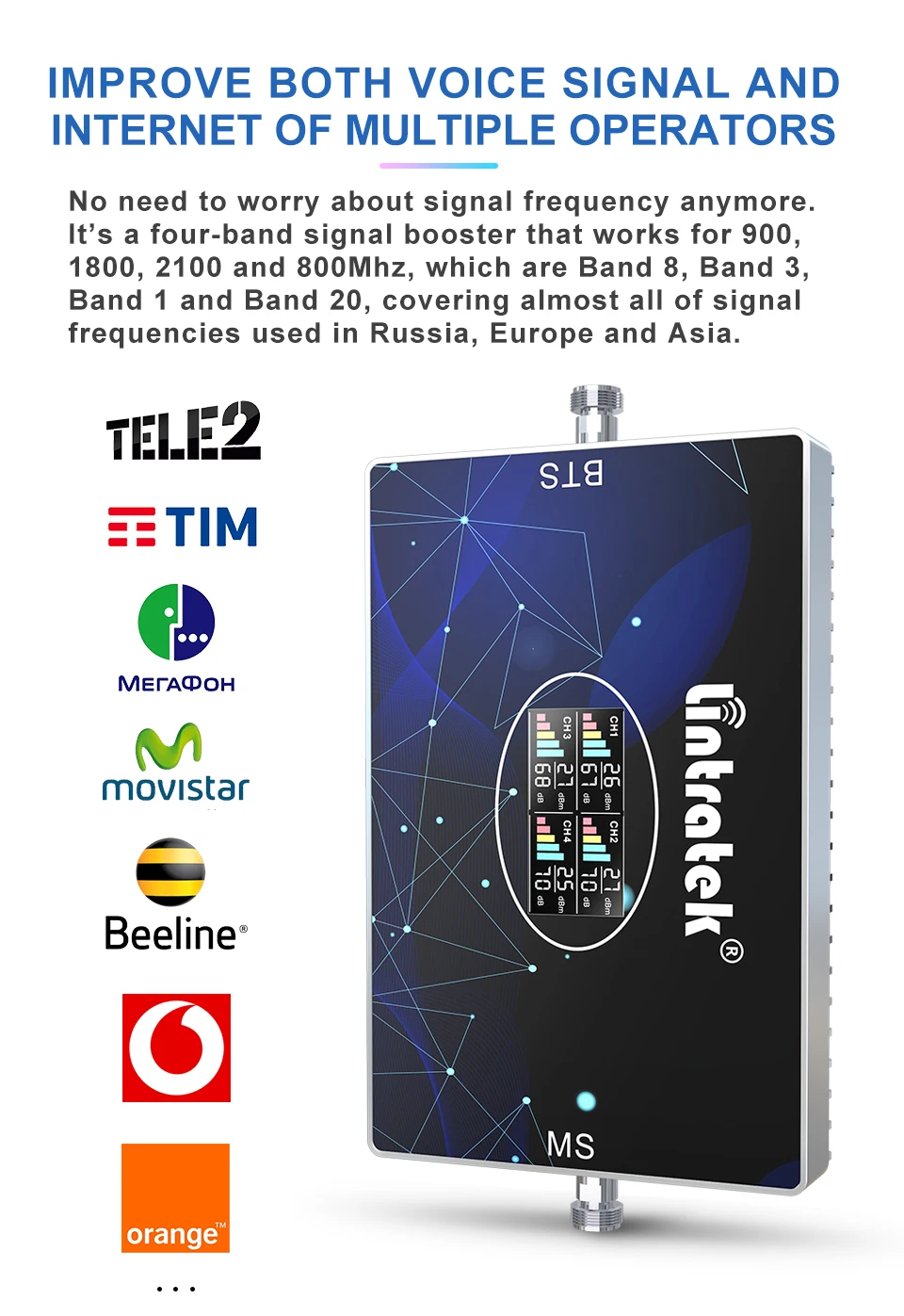 Купить Четырехдиапазонный усилитель сигнала Lintratek 70 дБ 4G 3G 2G GSM B3 B1 B7 B20 900 1800 2100 2600 LTE800 МГц