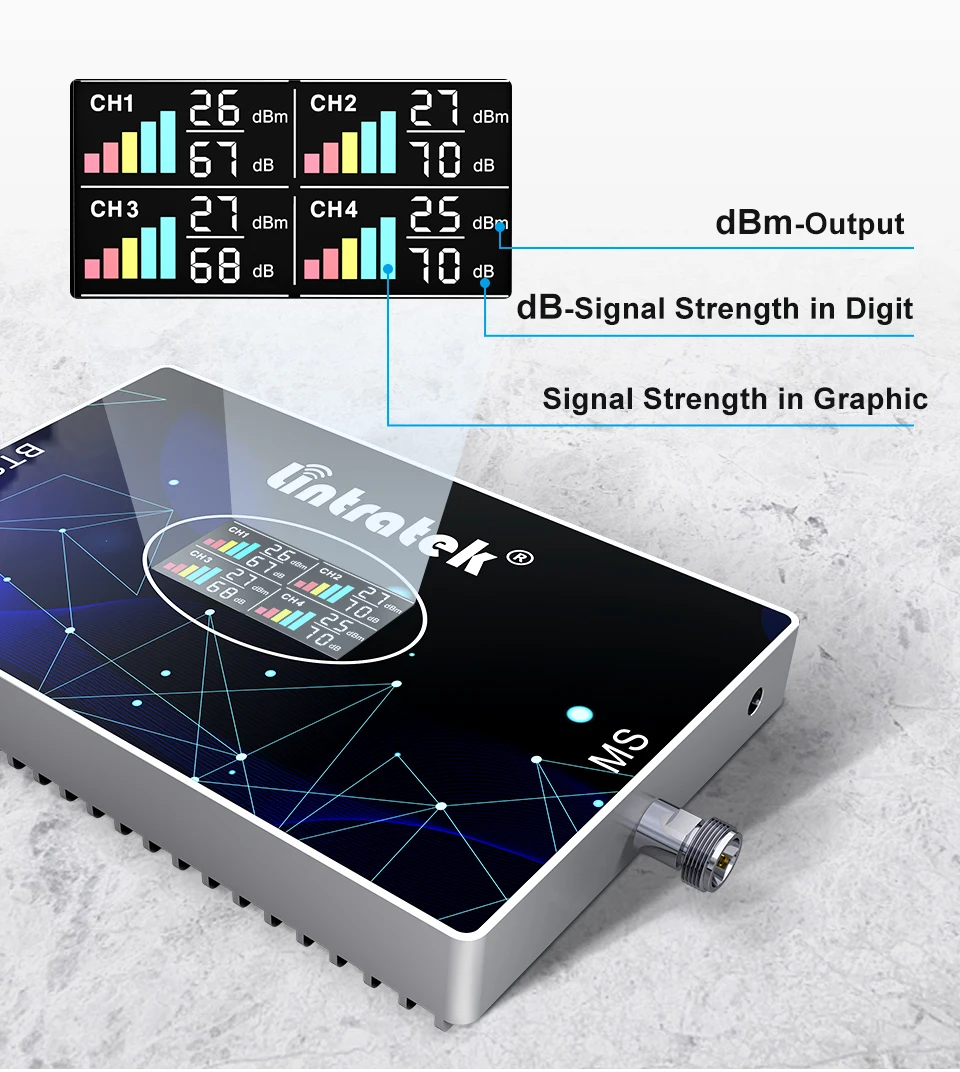 Отзывы о Четырехдиапазонный усилитель сигнала Lintratek 70 дБ 4G 3G 2G GSM B3 B1 B7 B20 900 1800 2100 2600 LTE800 МГц