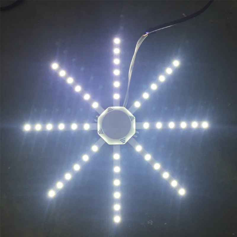 Наименование товара: светодиодный модуль Формы: осьминог Напряжение: 220 В переменного тока Мощность: 12 Вт 16 Вт 20 Вт 24 Вт Количество чипов: 12 Вт: 24 шт./16 Вт: 32 шт./20 Вт: 40 шт./24 Вт: 48 шт. Цветовая температура: теплый белый: 2800-3200K Холодный белый: 6000-6500K Индекс цветопередачи: Ra >85 Эффективность: >95% Угол луча: 170 градусов Срок службы: > 50000 часов