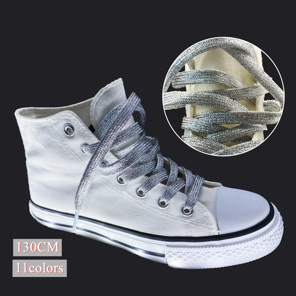 Отзывы о Красочные Широкие шнурки для кроссовок металлический блеск глянцевый