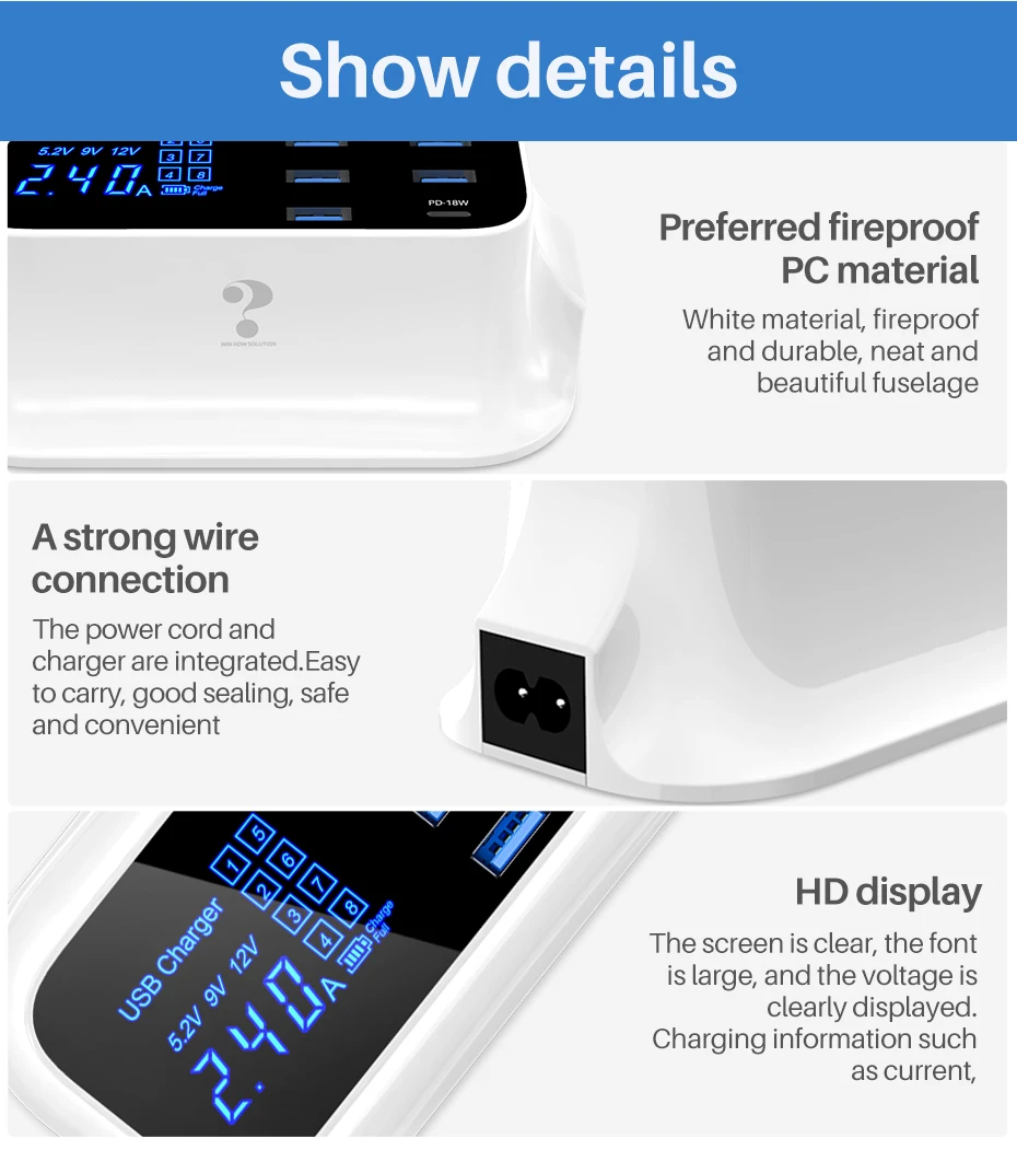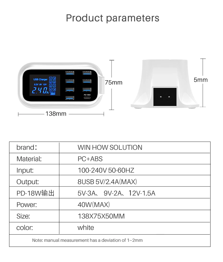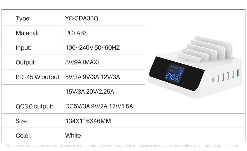 3. USB-A поддерживает 22,5 Вт Выходная мощность, выходное напряжение: 4,5 V = 5A 5Вт = 4.5A, 4,5 V = 5A 5Вт = 4.5A, 3,6 V-6V = 3A, 6V-9V = 2A, 9V-12V = 1.5A, поддержка Qualcomm QC3.0, QC2.0, Huawei FCP, SCP, samsung AFC, MediaT PE2.0, PE1.1, exhibition SFCP. Дождитесь соглашения о зарядке.