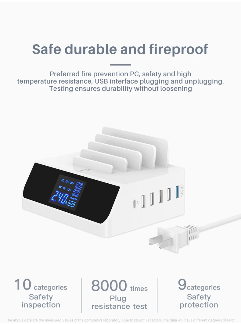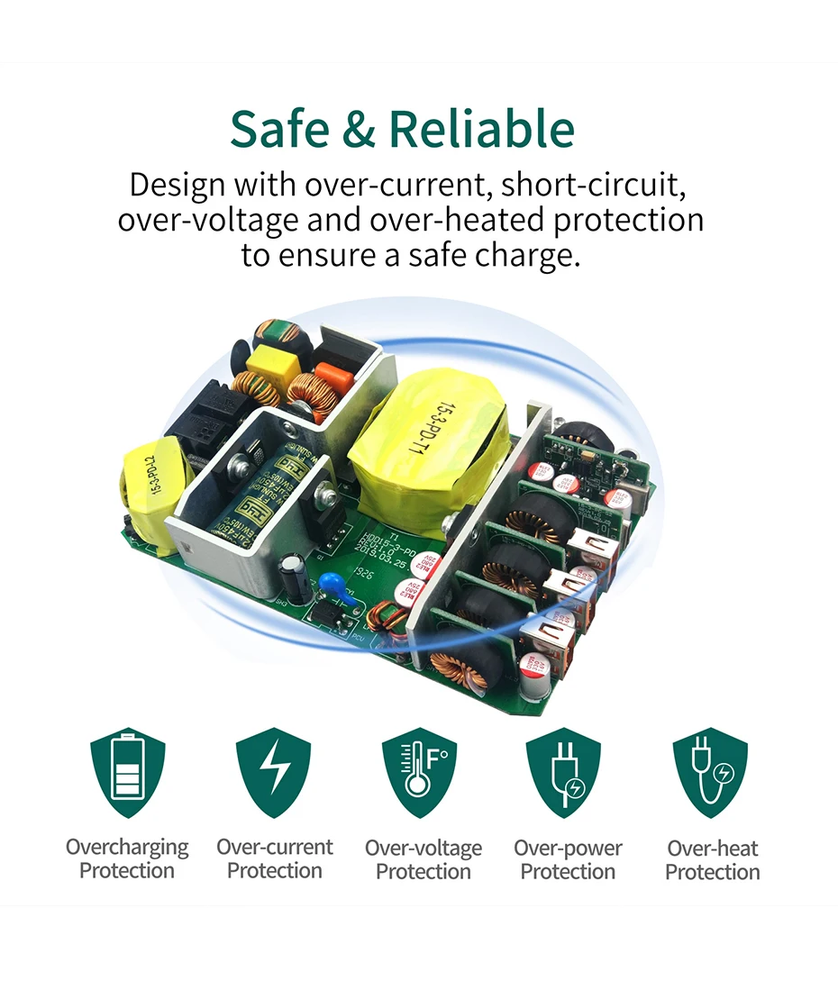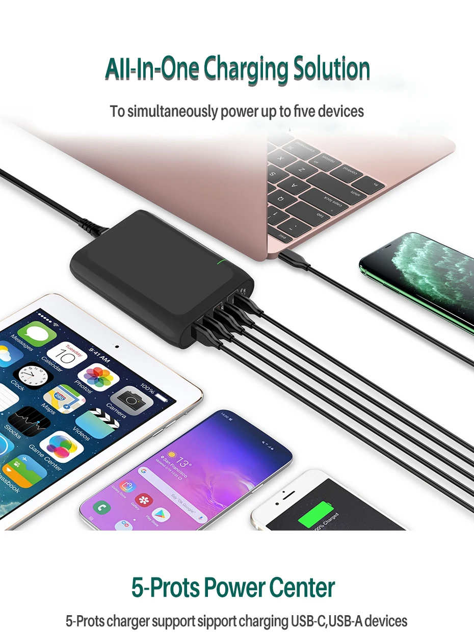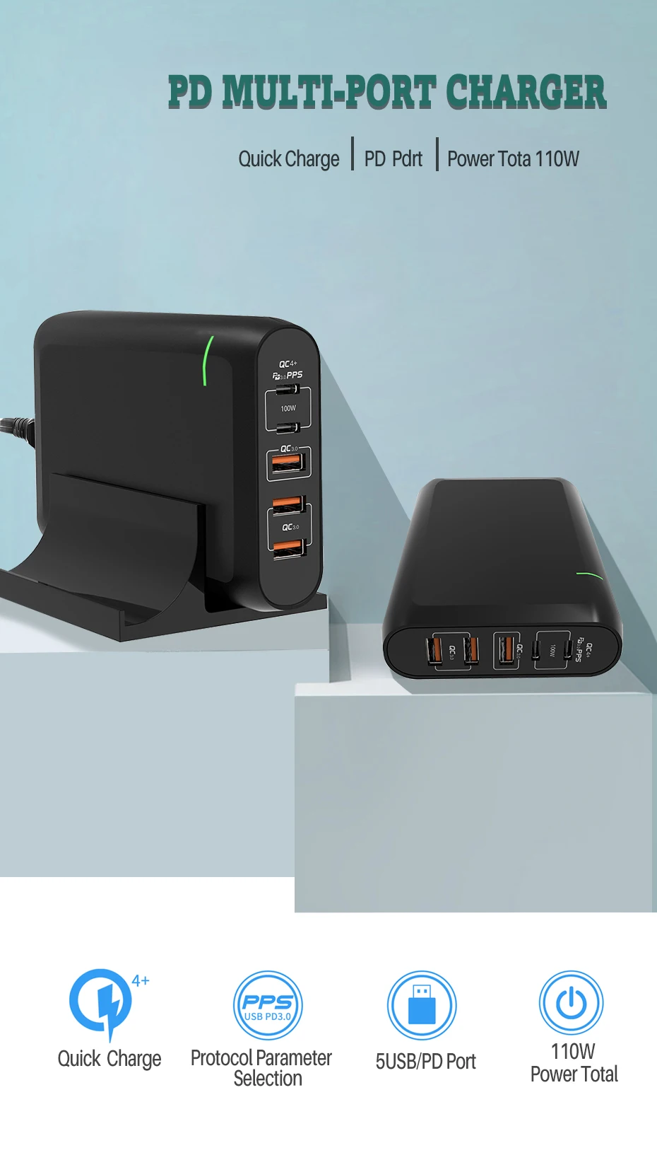1. Адаптер питания имеет 5 выходных портов, из которых Общая выходная мощность 2 USB-C и 3 USB-A составляет 110 Вт