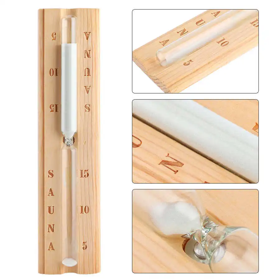 1. 15 ‑minute комплекса предпусковых операций песочные часы, с 5 ‑minute и 10 ‑minute весы знаки для удобного просмотра.2. Практичные аксессуары для сауны помогут вам отследить время работы сауны, что очень удобно в использовании.