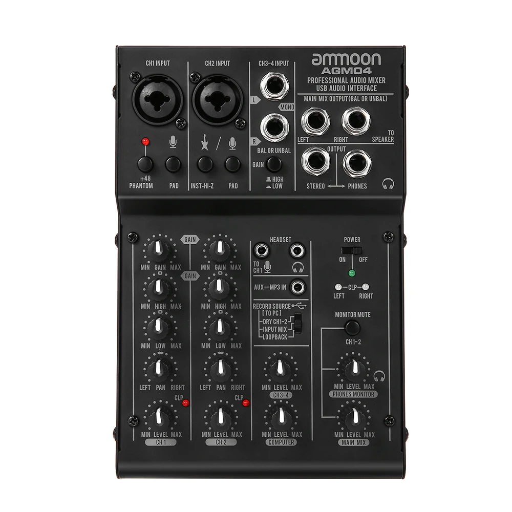 Ammoon AGM04 4 канальный мини микшерный пульт Цифровой аудио смеситель 2 полосный - купить