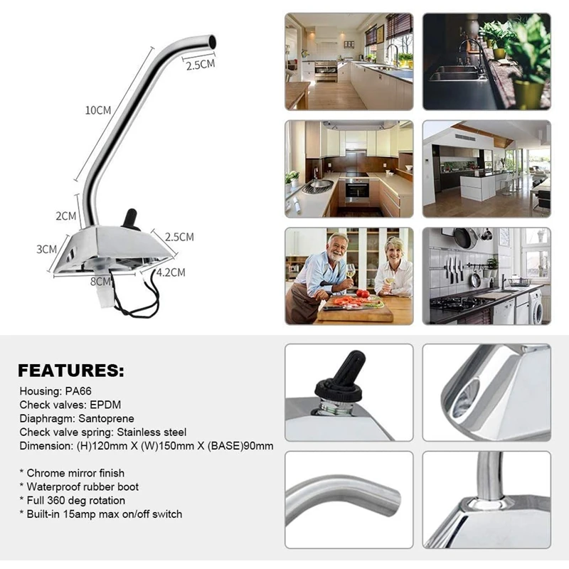12В самовсасывающий насос давления в камбузе, в комплекте с смесителем, встроенный 12В тумблер на основание крана-для автоматической активации насоса
