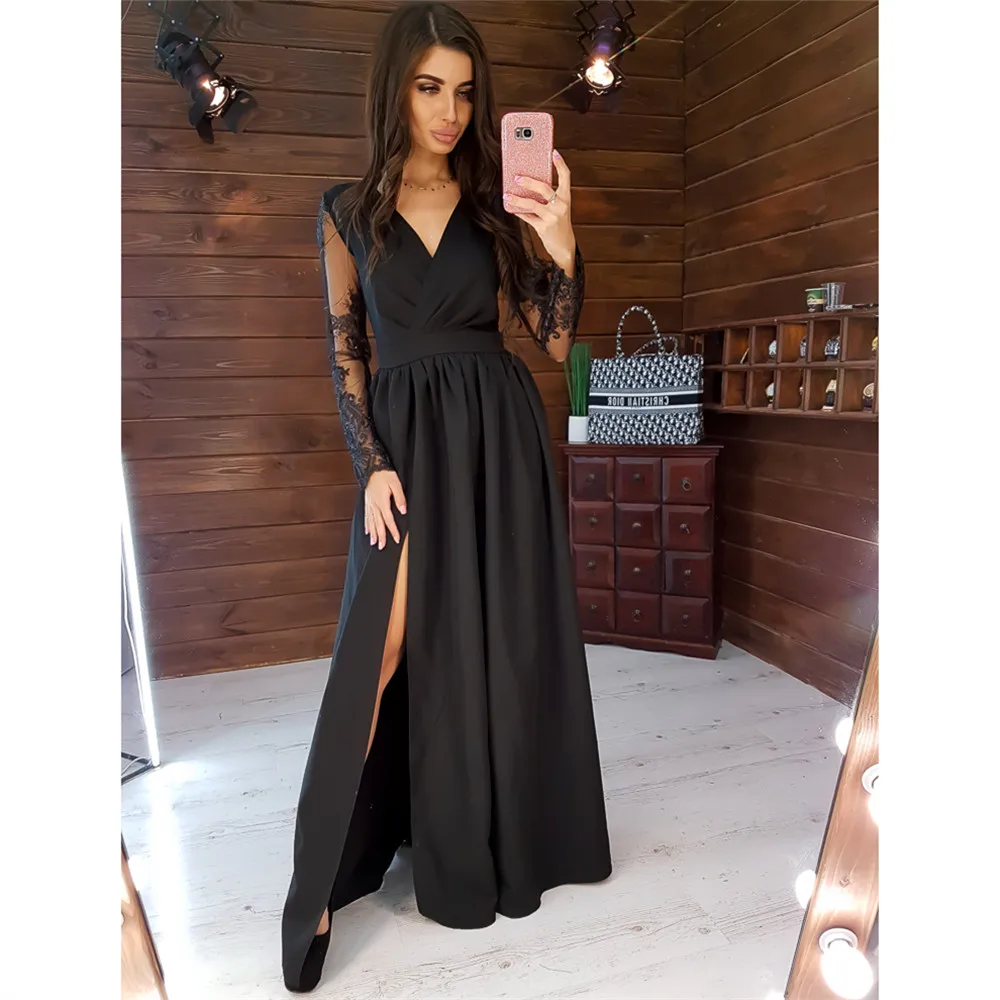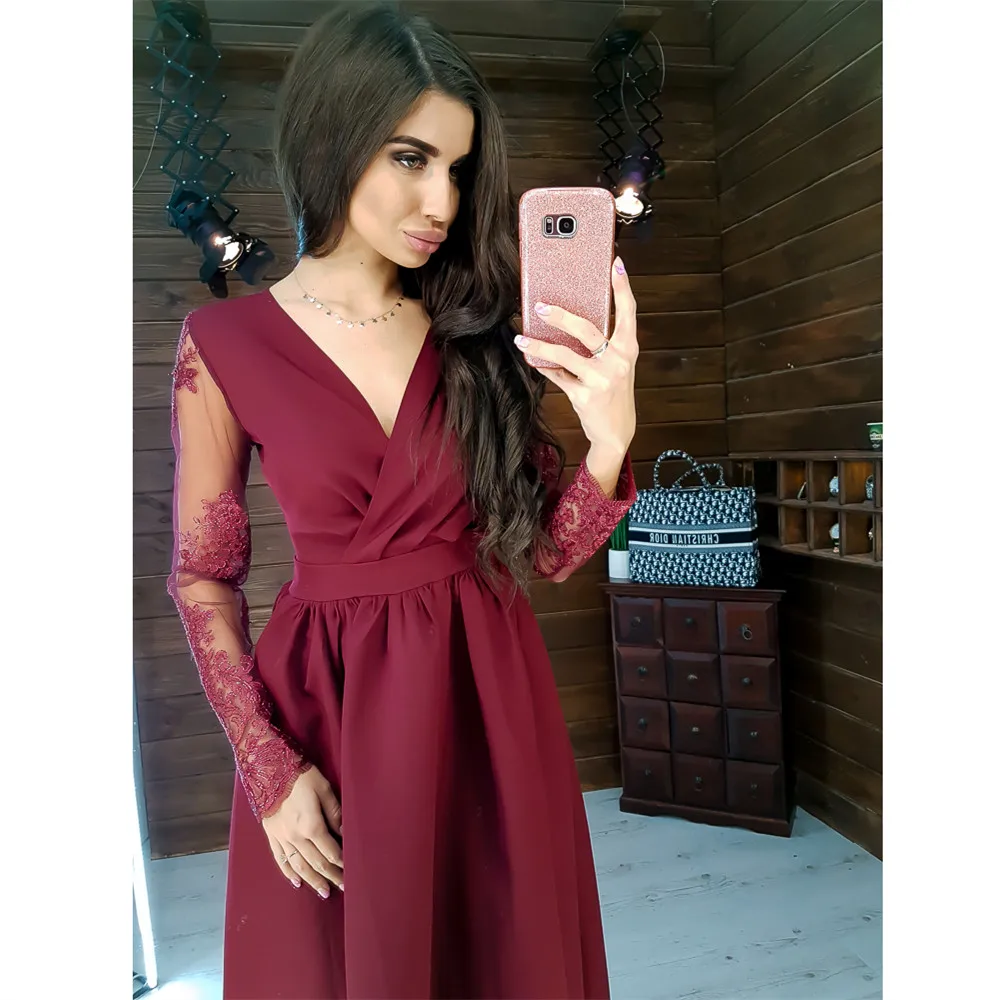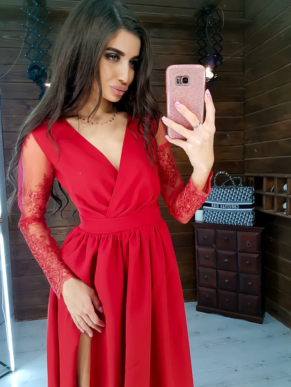 Отзывы о YUNUO красное платье макси для выпускного вечера с кружевом Вечернее длинными