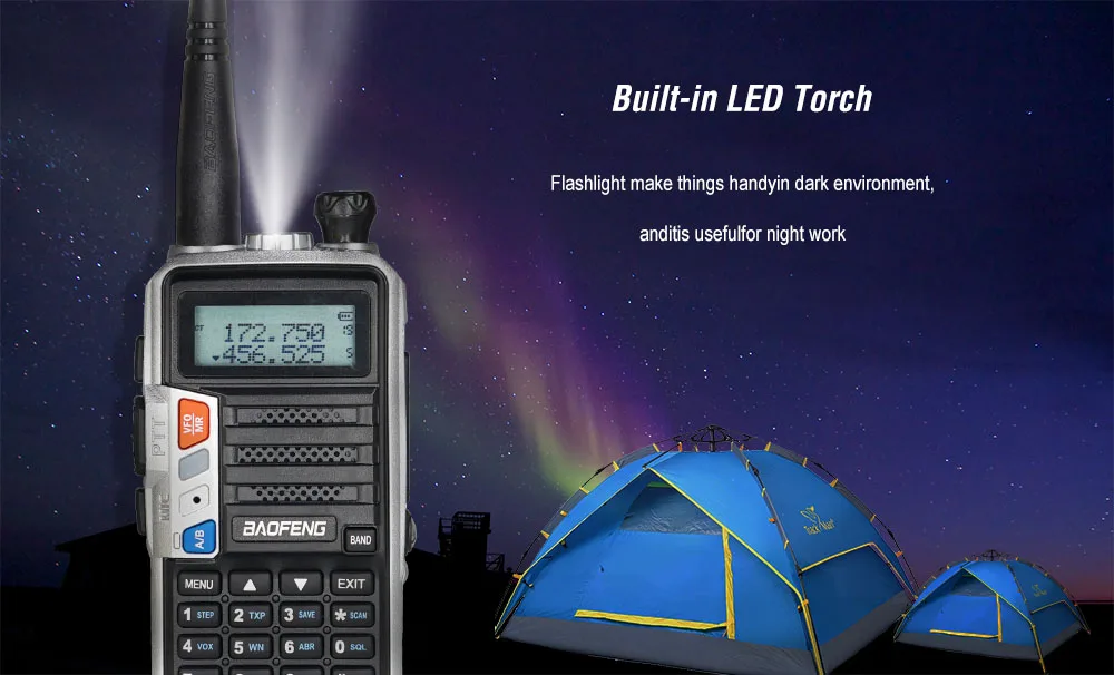 1. Трехдиапазонный Baofeng UV-5R Pro 136-174 МГц/220-260 МГц/400-520 МГц, с 2 антеннами (один специально для 220-260 МГц)