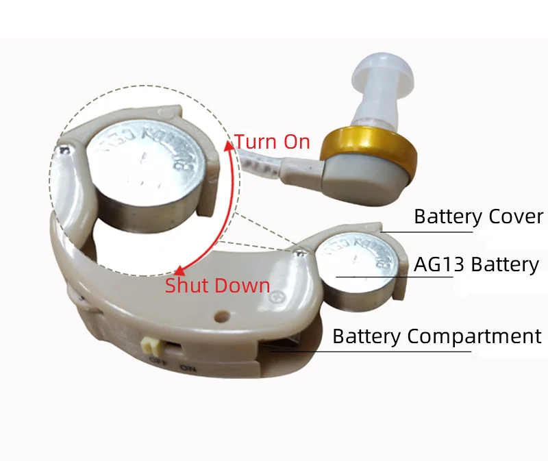 1. Отрегулируйте громкость до начала ношения. 2. Увеличивайте громкость постепенно, чтобы избежать внезапного увеличения звука. 3. Если вы слышите завывание, проверьте, подходит ли ушной (силикагель) Размер вилки, подходящий выбор затычек для ушей и подключен, убедитесь, что нет утечки воздуха. 4. Держите ушную вилку в чистоте 5. Когда слуховой аппарат не используется временно, пожалуйста, поместите переключатель в положение «OFF», чтобы сохранить питание. Когда не используется в течение длительного времени, пожалуйста, снимите батарею