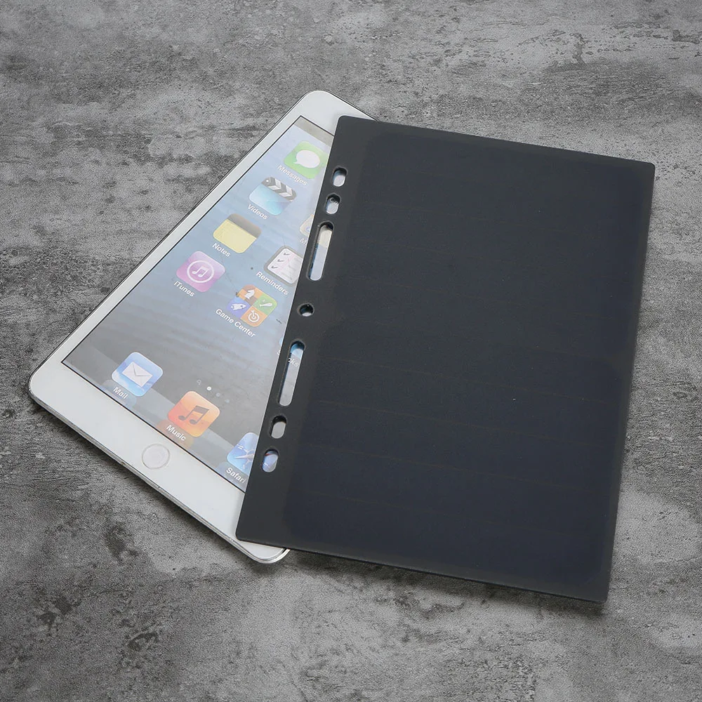 Эта солнечная панель является энергосберегающим решением для наружной зарядки. По сравнению с тяжелым внешним аккумулятором, емкость которого ограничена, эта солнечная панель настолько портативна, что ее можно поместить в ноутбук как страницу. Обеспечивая 22-23% ультра высокую скорость фотоэлектрического преобразования, он может быстро заряжать устройство через интерфейс USB.