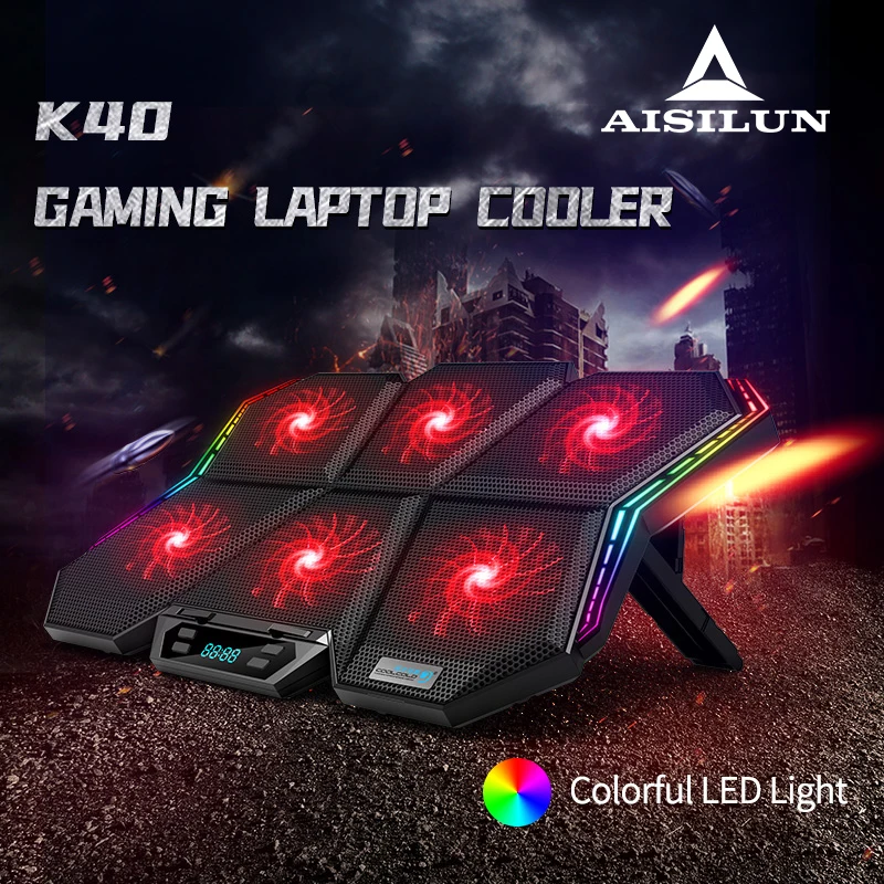 Игровой RGB кулер для ноутбука 12-17 дюймов светодиодный экран охлаждающая подставка для ноутбука с шестью вентиляторами и 2 портами USB
