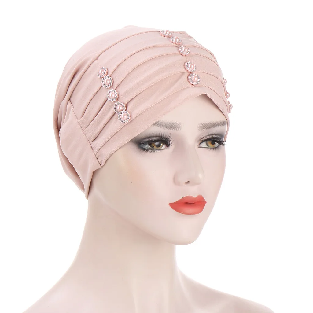 Модная мусульманская шляпа с гофрированным бисером и жемчугом в стиле тюрбана на 2022 год - купить